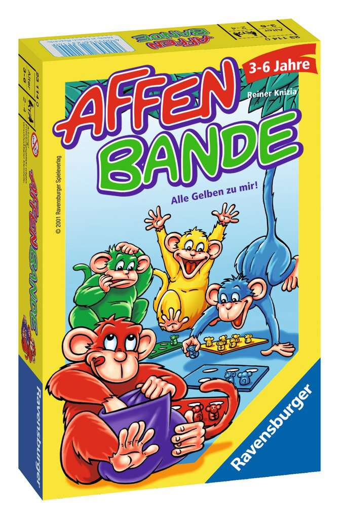 Wer findet als Erster alle Mitglieder seiner farbigen Affenbande? Ein spannendes Farbzuordnungsspiel für ganz kleine Kinder und ein wahrer Mitbringspiel-Klassiker!
