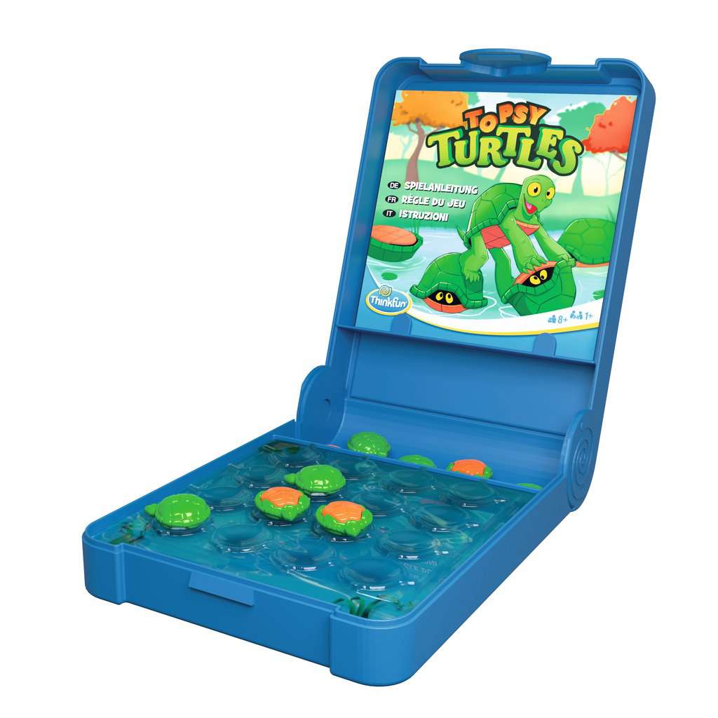 Bei Topsy Turtles liegen deine Schildkrötenfreunde hilflos auf dem Rücken und deine Aufgabe ist es, sie wieder auf die Beine zu bringen! Perfekt für unterwegs: Du musst nur die Box aufklappen und schon kann es losgehen. Mit 40 Herausforderungen für unterwegs macht Topsy Turtles jede Reise zu einem Vergnügen. Großartig, um deinen Verstand herauszufordern und Problemlösung, Ausdauer, Selbstregulierung und andere wichtige kognitive Fähigkeiten zu fördern.Flip N' Play ist eine Reihe von Thinkfun Logikspielen für Kinder und Erwachsene.Die Logikspiele Flip N' Play Reihe verbinden Spielspaß mit immer neu herausforderndem Gehirntraining. Sie fördern das logische- und strategische Denken sowie die Beobachtungsfähigkeit.Die Spiele sind durch ihre Verpackung auch ideal zum mitnehmen geeignet.