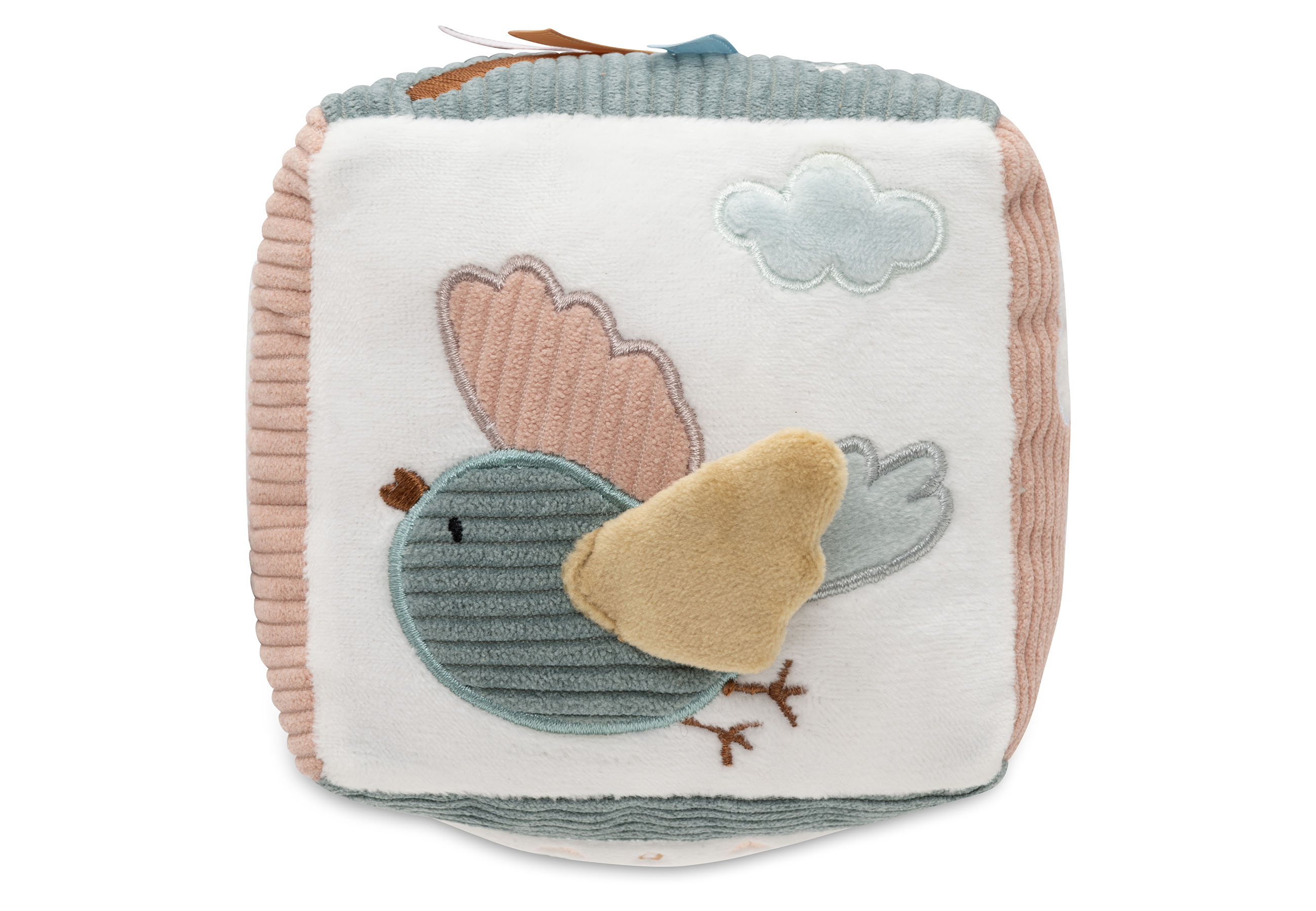 Dieser fröhliche Aktivitäten-Würfel im Lovely Birds-Thema ist voller farbenfroher Aufdrucke, mit vielen niedlichen Prints, lustigen Etiketten und schönen Stickereien! Es gibt fröhliche Vögel, flauschige Wolken, Blumen, einen Stern und sogar die Fee Amy zu entdecken! Die Vögel haben bezaubernde Flügel und die Schnüre sind wunderschön bestickt, damit dein Kind endlos damit spielen und alles erkunden kann. Dieser mega tolle Aktivitäten-Würfel stimuliert die Sinne und sorgt für stundenlangen Spielspaß!