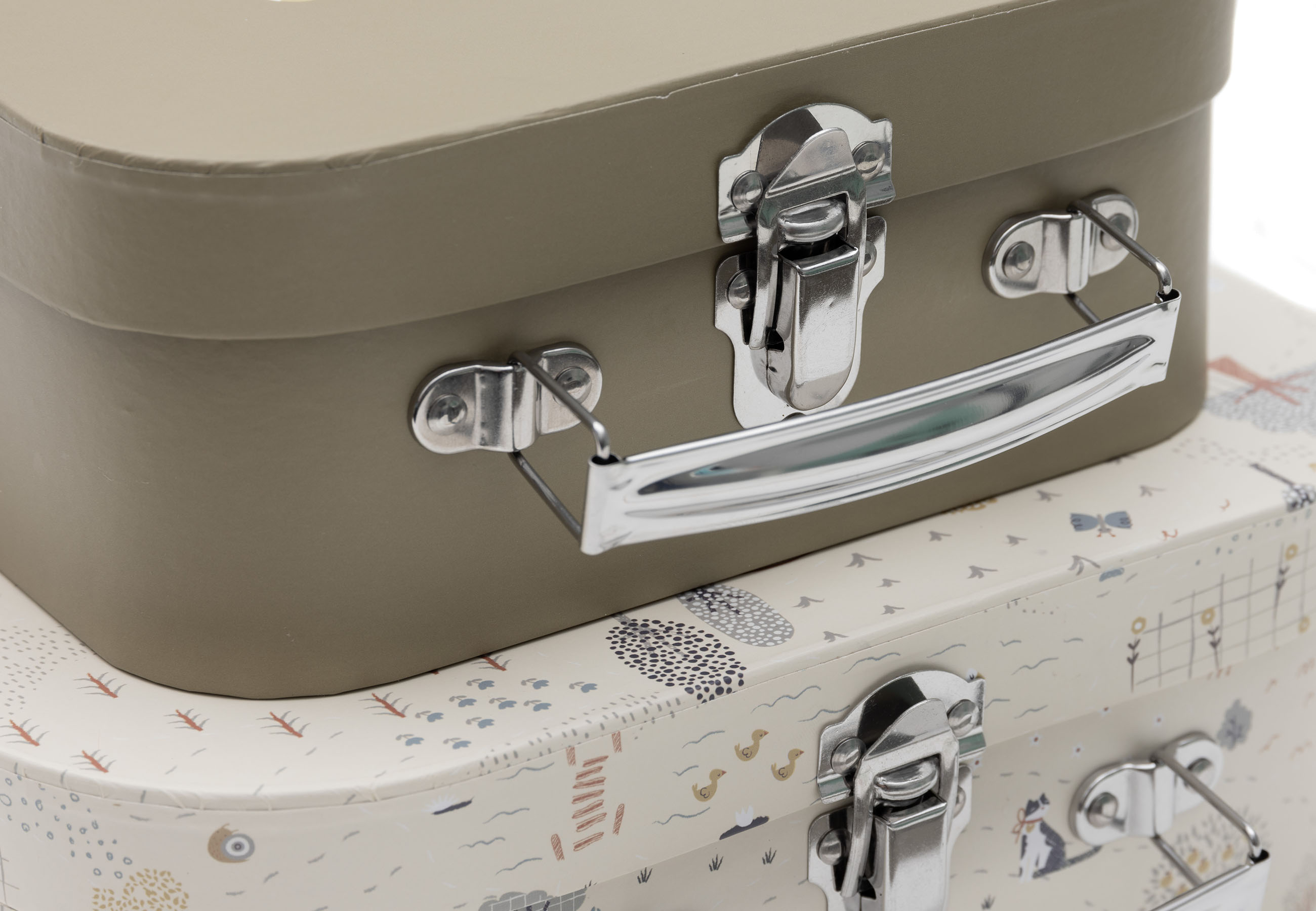 Dieses Spielkoffer-Set im Tiny Park-Stil ist perfekt für dein Kind! Die Koffer haben verschiedene Drucke, passen farblich zur Tiny Park Kollektion und sind mit silberfarbenen Griffen versehen – für einen verspielten Look. Innen sind sie mit einem Karomuster und dem Text „belongs to“ versehen, damit dein Mini sie überallhin mitnehmen kann. Ideal zur Aufbewahrung kleiner Dinge oder als Deko im Kinderzimmer!