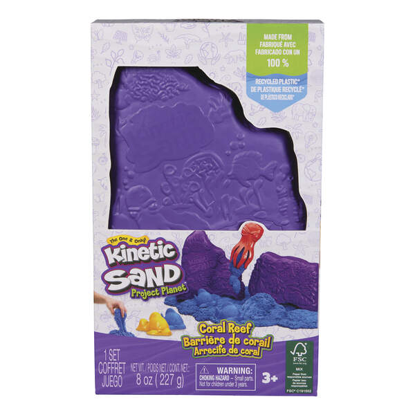 Spielen mit gutem Gewissen, das gilt für dieses Kinetic Sand Set aus der Project Planet Linie gleich doppelt.