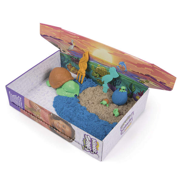 Die Project Planet Linie von Kinetic Sand möchte nicht nur spielerisch an das Thema Natur und Umweltschutz heranführen, sondern auch mit den Produkten selbst ein Zeichen setzen. Alle Kunststoffteile sind zu 100% aus recyceltem Kunststoff gefertigt, damit dieser nicht verbrannt wird oder im Meer landet.