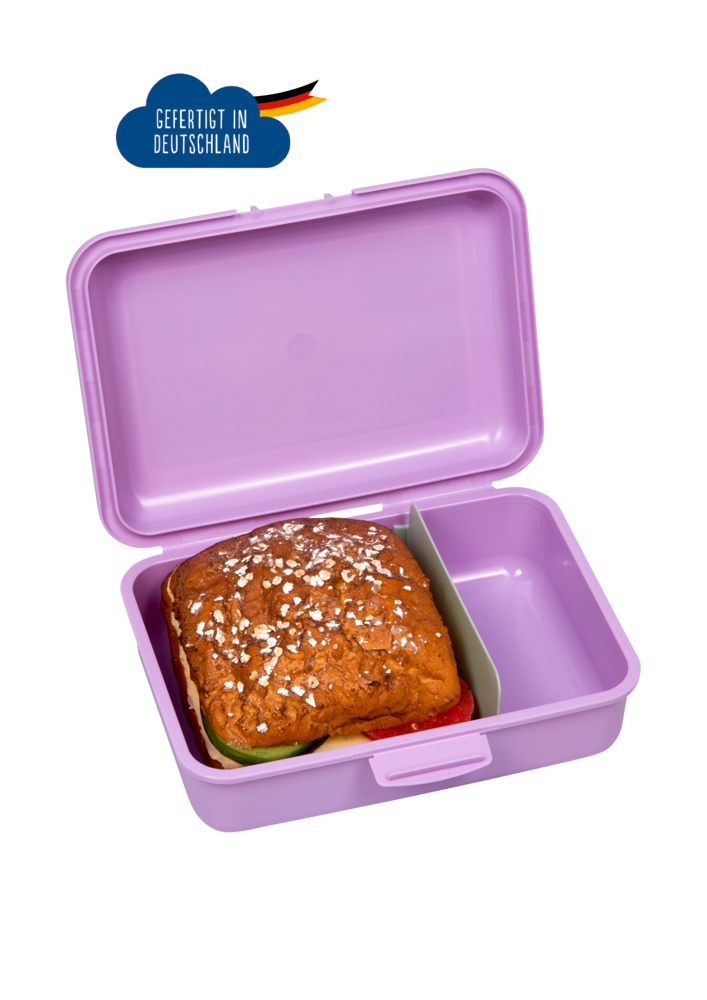 Die kleine lilafarbene Butterbrotdose mit dem zauberhaften Blumen-Motiv ist kompakt und leicht zu handhaben, perfekt für kleine Hände und Rucksäcke. Handspülung empfohlen. Mit einer stufenlos verstellbaren Trennwand ermöglicht die Brotdose es Eltern, verschiedene Snacks sauber voneinander zu trennen.