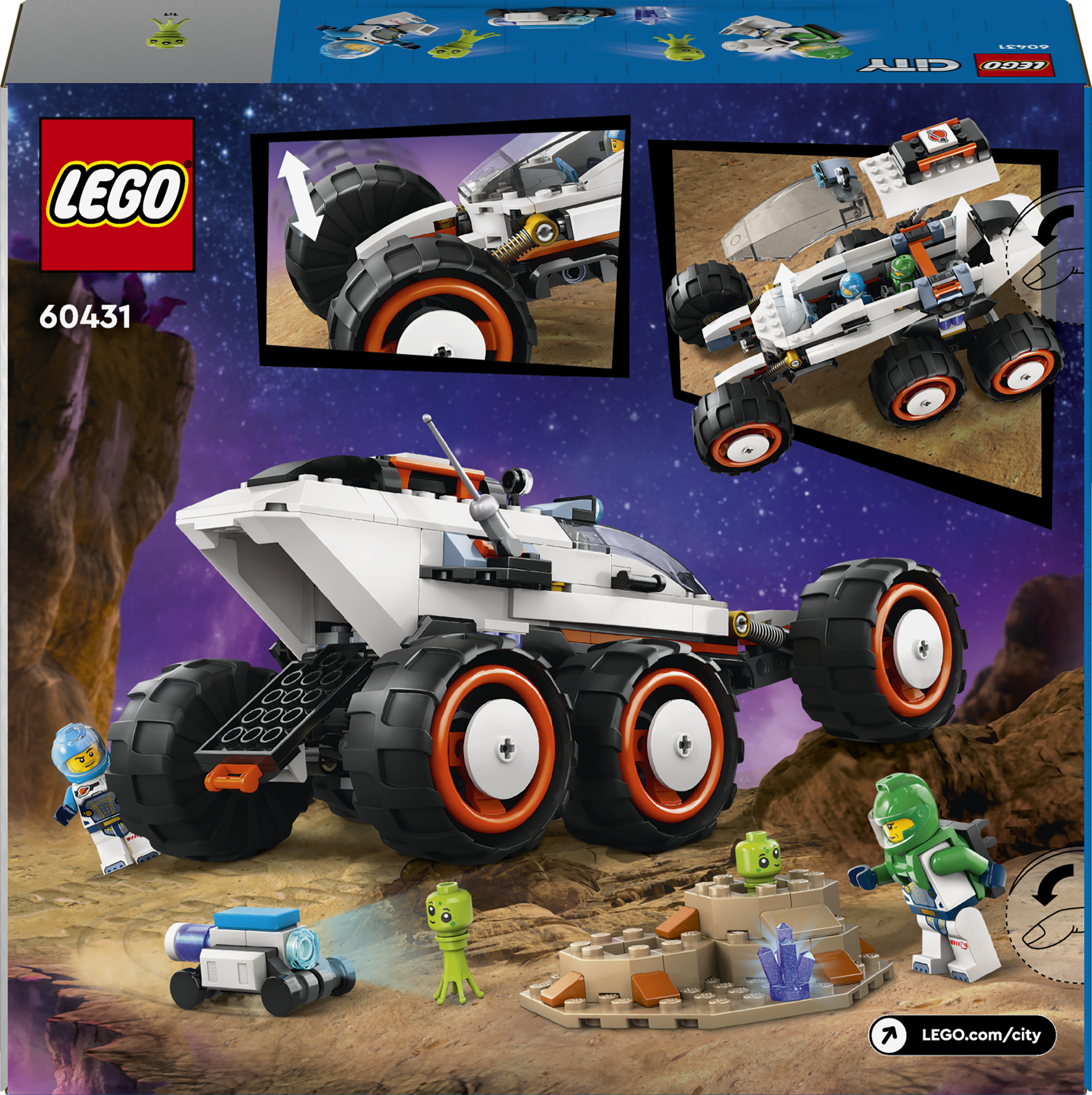 LEGO® City Weltraum-Rover mit Außerirdischen (60431) macht das Erkunden neuer Welten zu einem echten Kinderspiel für Weltraumfans ab 6 Jahren. Der robuste Weltraum-Rover verfügt über 6 große Reifen und eine hochmoderne Federung für Fahrten auf einer felsigen Planetenoberfläche. Dein Kind kann die Weltraumcrew auf Fahrten zur Kartierung der Planetenoberfläche begleiten und seltsam dampfende Geysire sowie Außerirdische entdecken. Dieses faszinierende Set beinhaltet 2 Weltraumcrew-Minifiguren sowie einen Roboter und einen Alien. Begleite deinen jungen Weltraumforscher auf ein faszinierendes Abenteuer! Lade dir die LEGO Builder App herunter und freu dich auf ein völlig neues Bauerlebnis. Die enthaltenen Funktionen lassen dein Kind 3D-Ansichten der Modelle vergrößern und drehen, seinen Baufortschritt verfolgen und neue LEGO Bausets erkunden. LEGO City Weltraumspielzeuge sind tolle Geschenke zu jedem Anlass und beinhalten wirklichkeitsgetreue Fahrzeuge, detailreiche Bauwerke und faszinierende Figuren, die Fantasie und Wirklichkeit zu einem fantasievollen Spielerlebnis ohne Limits verschmelzen. Für weitere spannende Abenteuer kann dein Kind dieses Weltraumforschermodell mit anderen separat erhältlichen LEGO City Weltraum-Sets kombinieren.