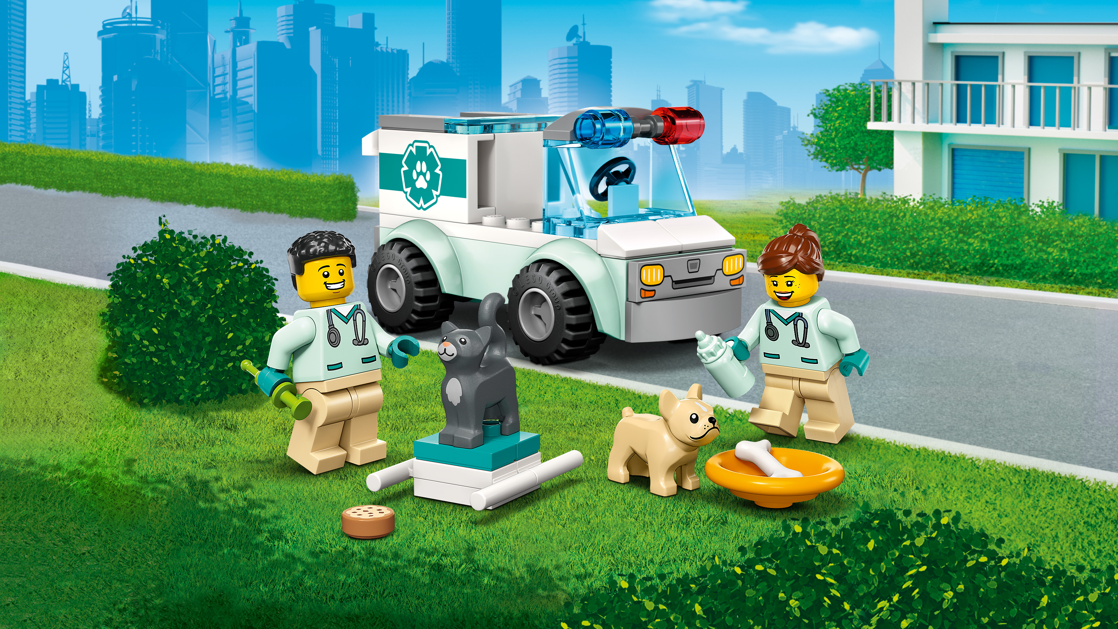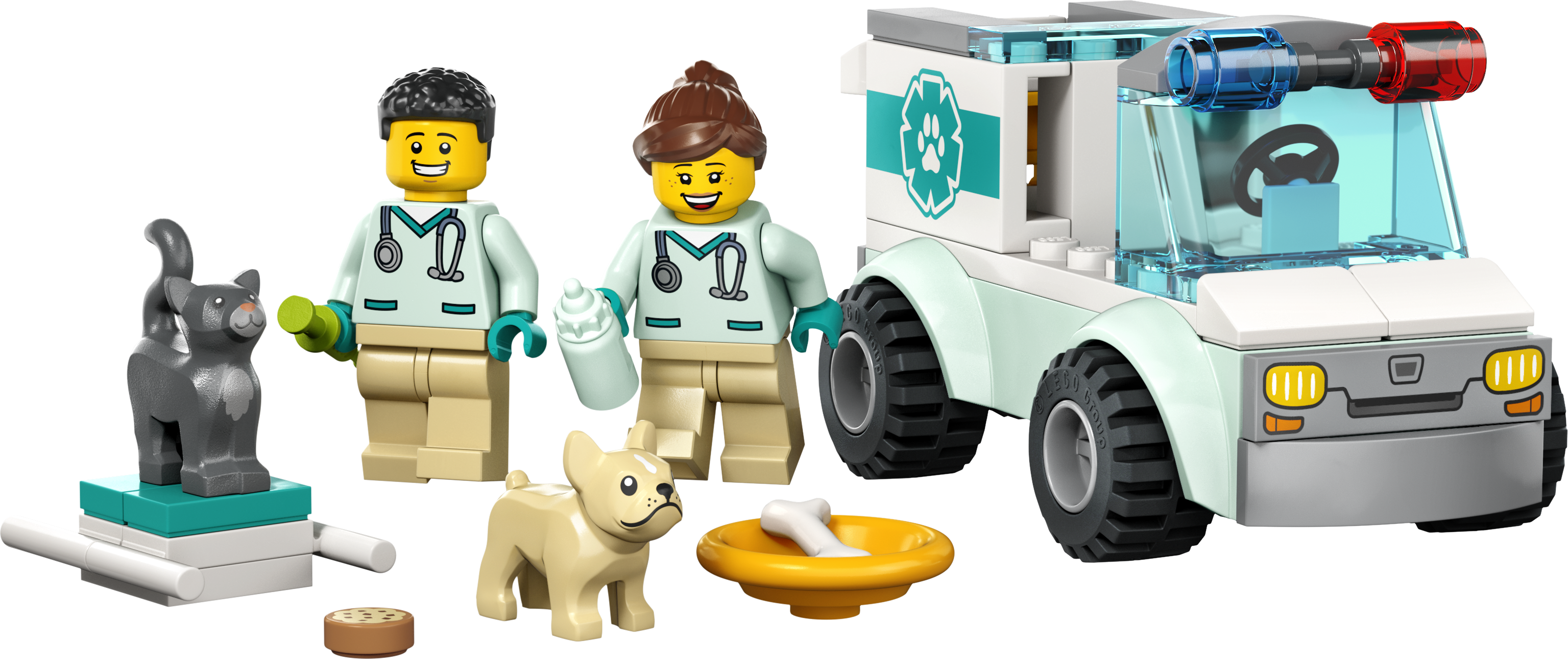 • Inhalt in der Box: Alles, was Kinder brauchen, um einen Tierrettungswagen zu bauen, sowie 2 Tierarzt-Minifiguren, ein Hund, eine Katze und cooles Zubehör