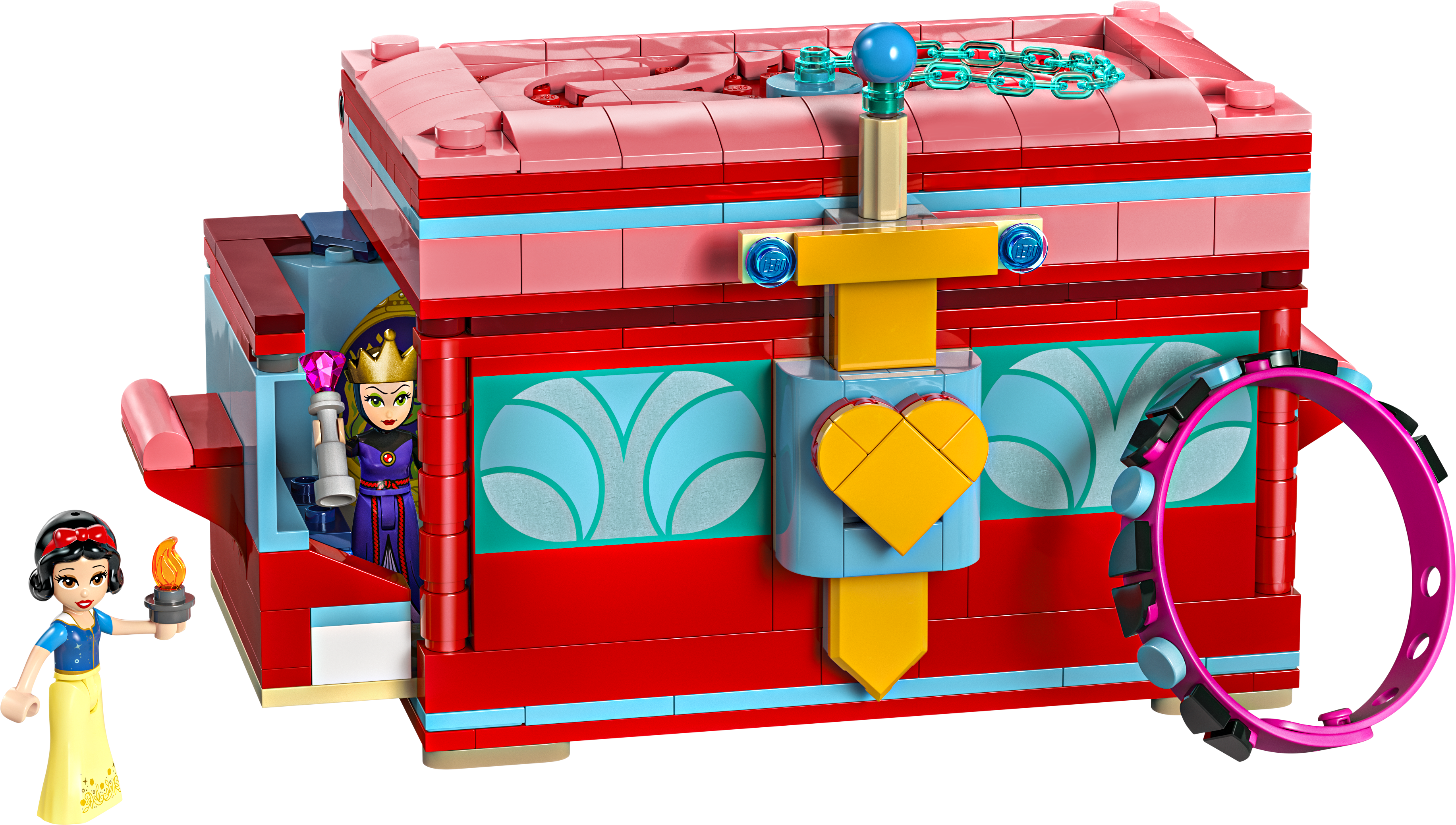 LEGO® ǀ Disney Schneewittchens Schmuckkassette (43276) ist ein fantastisches Geschenk für Kinder und Disney Fans ab 6 Jahren. Das Bau- und Spielset beinhaltet eine Kassette mit aufklappbarem Deckel, Kettenschloss mit Schwert und Griffen an beiden Seiten, um die versteckten Zimmer herausziehen zu können. Auch die beiden LEGO ǀ Disney Spielfiguren – Schneewittchen und die böse Königin – laden zum Spielen ein. Außerdem kannst du ein buntes Armband mit vielen Deko-Elementen verzieren und dann tragen. Wenn Kinder mit den geheimen Zimmern aus diesem Disney Bauset spielen und das Armband nach ihren eigenen Vorstellungen verzieren, entwickeln sie größeres Selbstvertrauen. Das Modell lässt sich aber auch wunderbar mit den anderen separat erhältlichen LEGO ǀ Disney Bausets kombinieren. Sowohl Kinder als auch Erwachsene werden von dem detailreichen Bauset begeistert sein. Gerne werden sie dieses faszinierende Disney Geschenk miteinander zusammenstecken. Die LEGO Builder App bietet ein ebenso leichtes wie intuitives Bauerlebnis. In der App können Kinder 3D-Ansichten der Modelle vergrößern und drehen, Sets speichern und ihren Baufortschritt verfolgen.