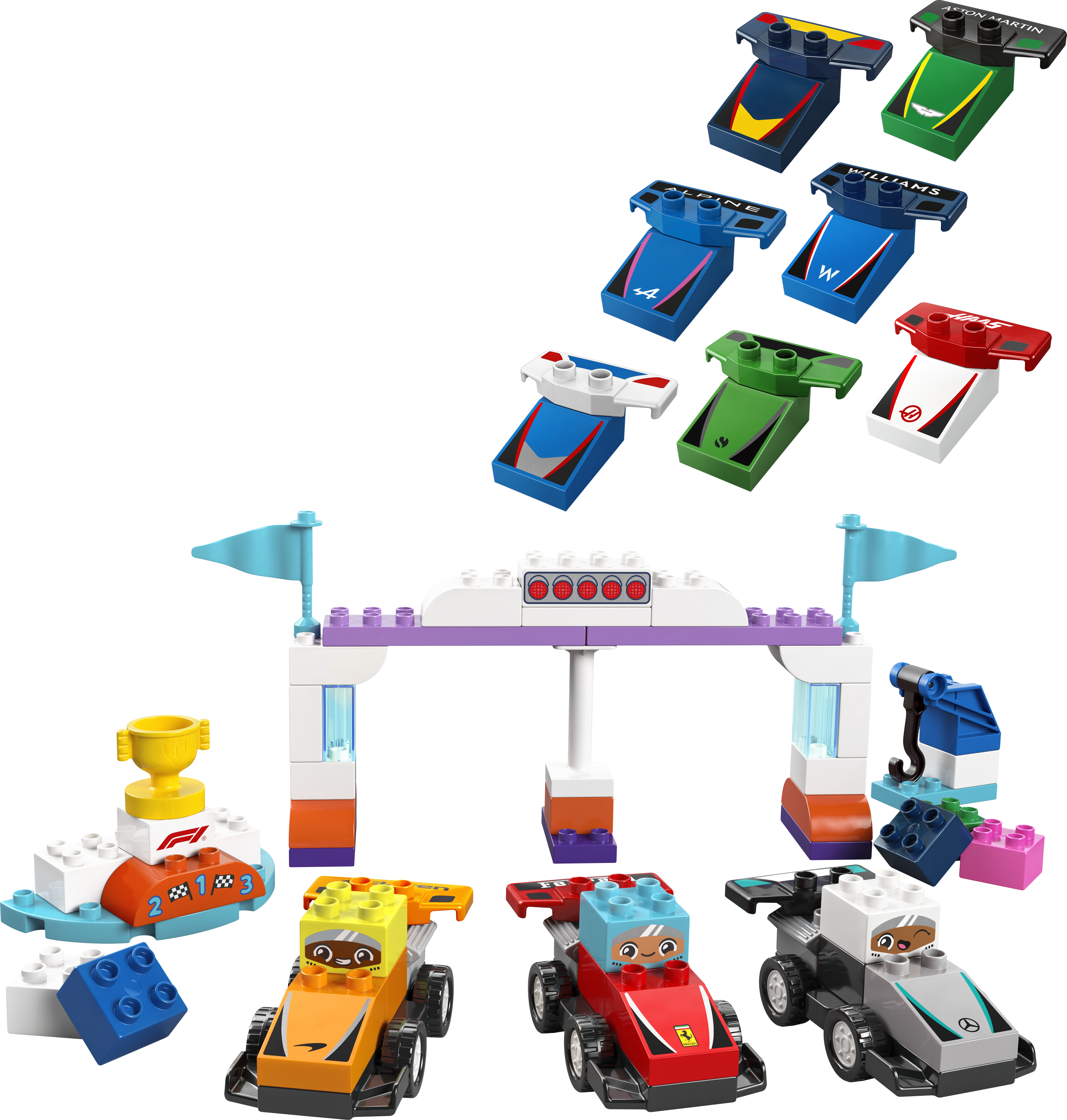 • Kreativer Spielspaß für die ganze Familie: Teile deine Begeisterung für die F1® mit deinem Kleinkind – mit einem Spielset, das 10 baubare Rennautos, 3 Rennfahrer-Bausteine, einen Spielzeugkran, eine Startampel und ein Siegerpodest beinhaltet