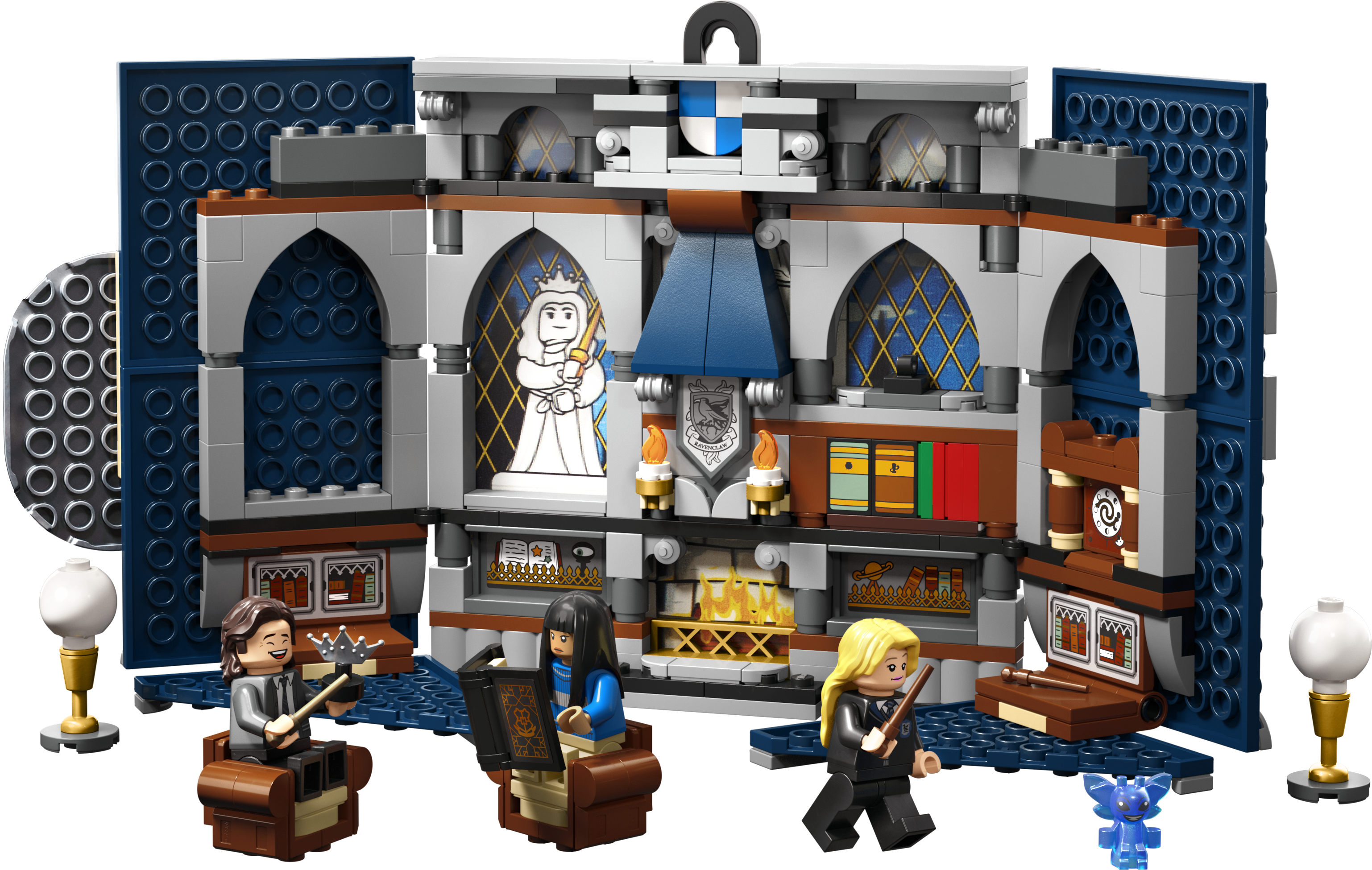Mit diesem LEGO® Harry Potter™ Hausbanner (76411) können Fans ihre Verbundenheit mit Ravenclaw™ zeigen. Ein bedrucktes Element stellt das Wappen von Ravenclaw dar. Und mit dem Aufhänger kannst du das Banner an die Wand hängen. Das Banner aus LEGO Steinen lässt sich aufklappen, um eine detailgetreue Nachbildung des großen Gemeinschaftsraum von Ravenclaw mit Tisch, Buch, 2 Stühlen, 2 Lampen und Ravenclaws Diadem preiszugeben. Eine linsenförmige Rückwand zum Einschieben erzeugt mithilfe der Fenster und der flackernden Flammen im Kamin die Illusion von Tiefe. Erwecke die Szene dann mit den Minifiguren Cho Chang™, Luna Lovegood™ und Michael Corner sowie einem Wichtel zum Leben. Spielzeug zum Sammeln Dieses LEGO Harry Potter Spielset zum Mitnehmen ist 1 von 4 Hogwarts™ Hausbannern zum Sammeln und eine coole spontane Überraschung für Kinder ab 9 Jahren. Freu dich auf ein neues Bauerlebnis Die LEGO Builder App bietet deinem Kind ein leichtes und intuitives Bauabenteuer. Die Funktionen lassen dein Kind 3D-Ansichten der Modelle vergrößern und drehen, Sets speichern und seinen Baufortschritt verfolgen.