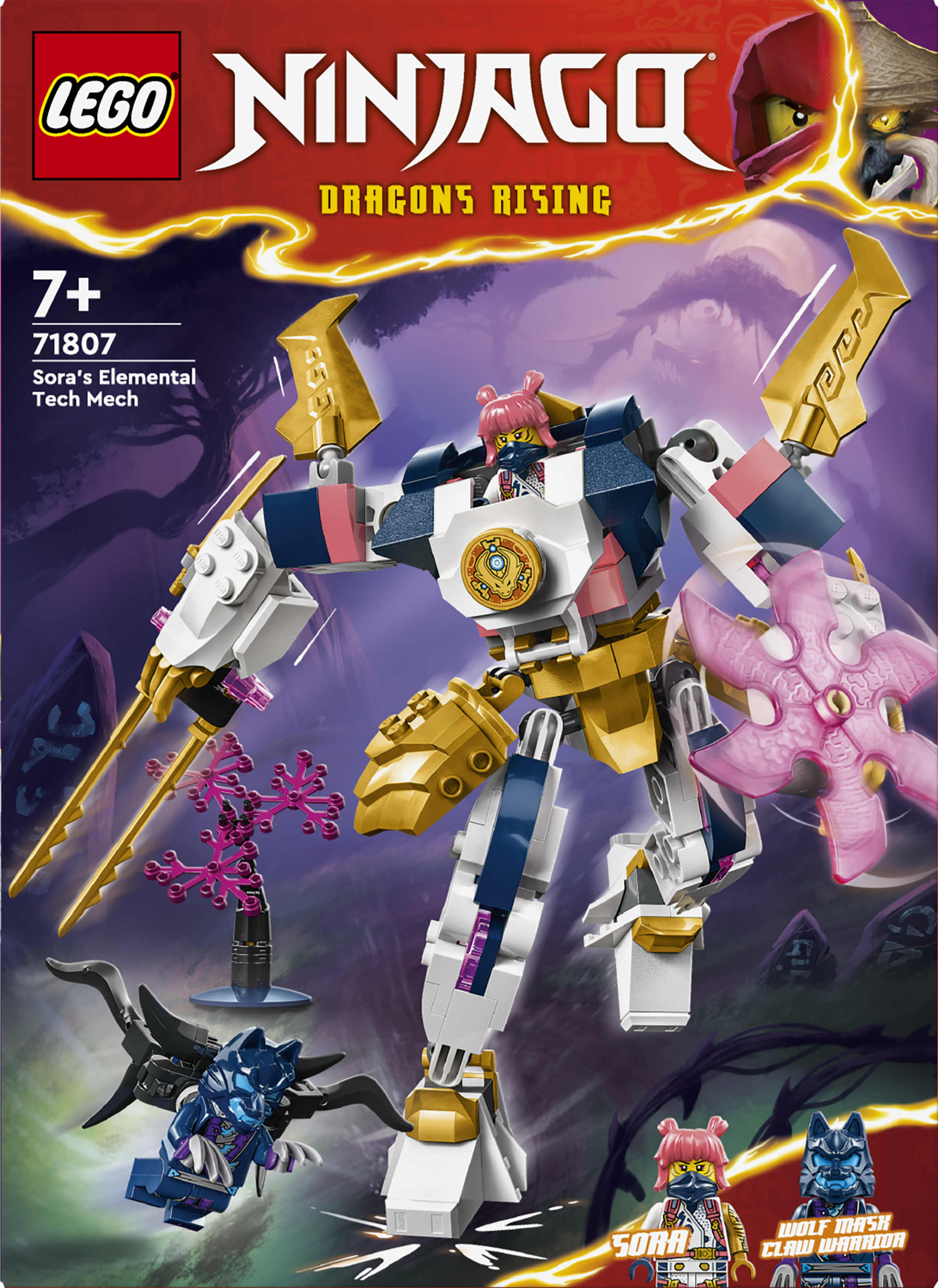 • 2 NINJAGO® Minifiguren: Das Set beinhaltet Sora mit ihren beiden Katanas sowie einen Wolfsklauenjäger, damit dein Kind die Duelle aus der 2. Staffel der TV-Serie NINJAGO Aufstieg der Drachen nachstellen kann