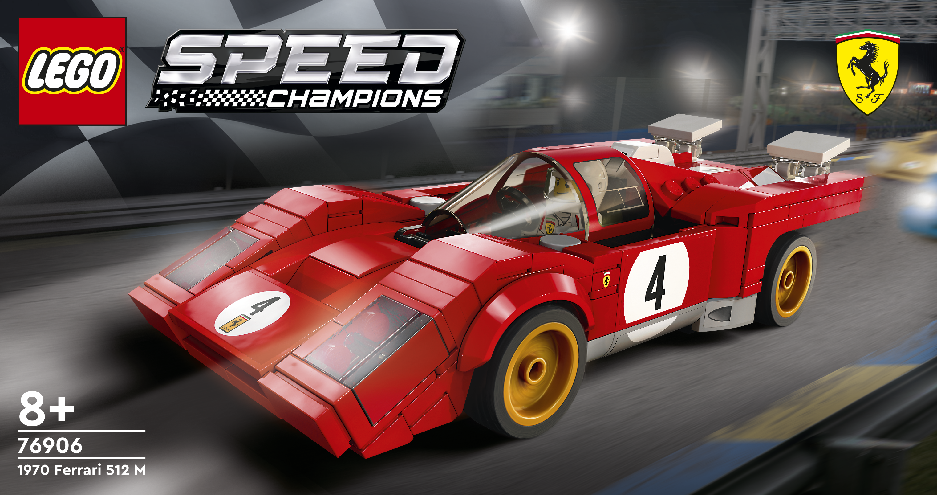 • Sammeln, spielen, ausstellen: Kinder und Autofans können den 1970 Ferrari 512 M bauen und dabei näher entdecken, ihr fertiges Modell dann ausstellen oder den Flitzer in spannende Speed Champions Rennen gegen die Autos ihrer Freunde schicken