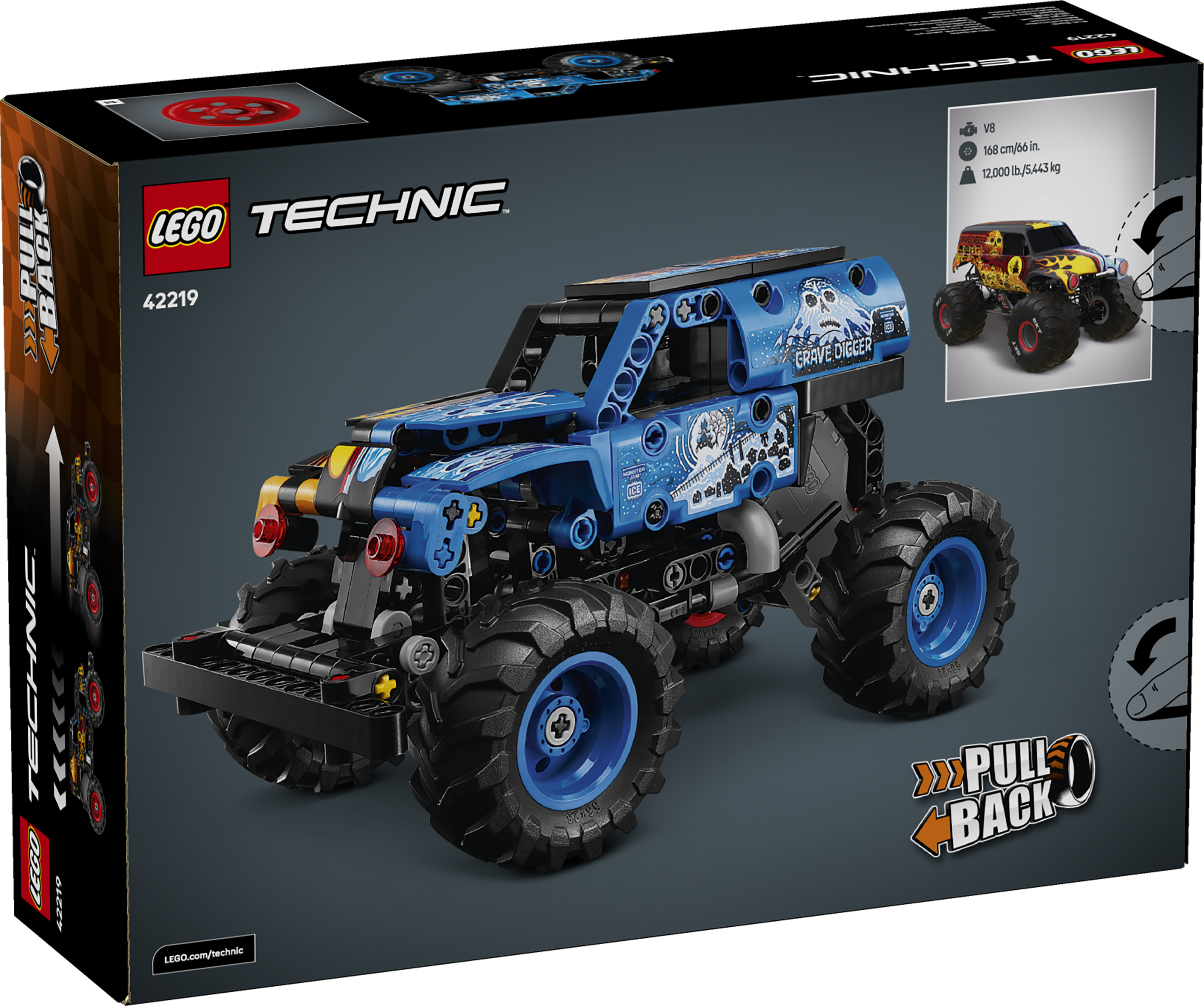 Dieser coole Monster Jam Monstertruck mit Rückziehmotor bietet Jungen und Mädchen ab 7 Jahren ein faszinierendes Spielerlebnis. Lass den LEGO Technic Monster Jam Grave Digger Feuer und Eis (42219) mithilfe der Rückziehfunktion losflitzen. Junge Fans von Modellbau und Konstruktionsspielzeug können mit diesem Truck ihre liebsten Tricks und Stunts aus der Monster-Jam-Arena nachstellen.