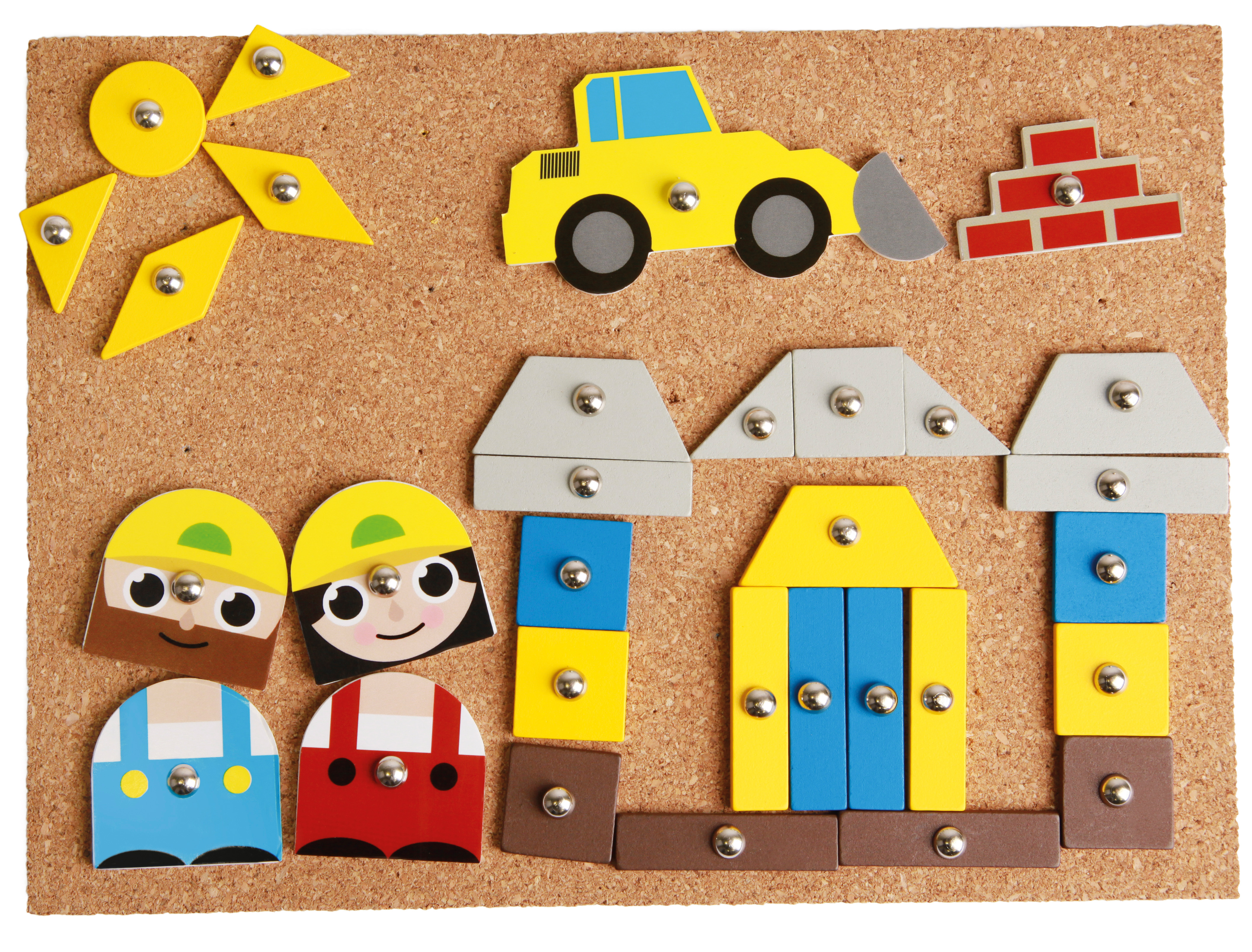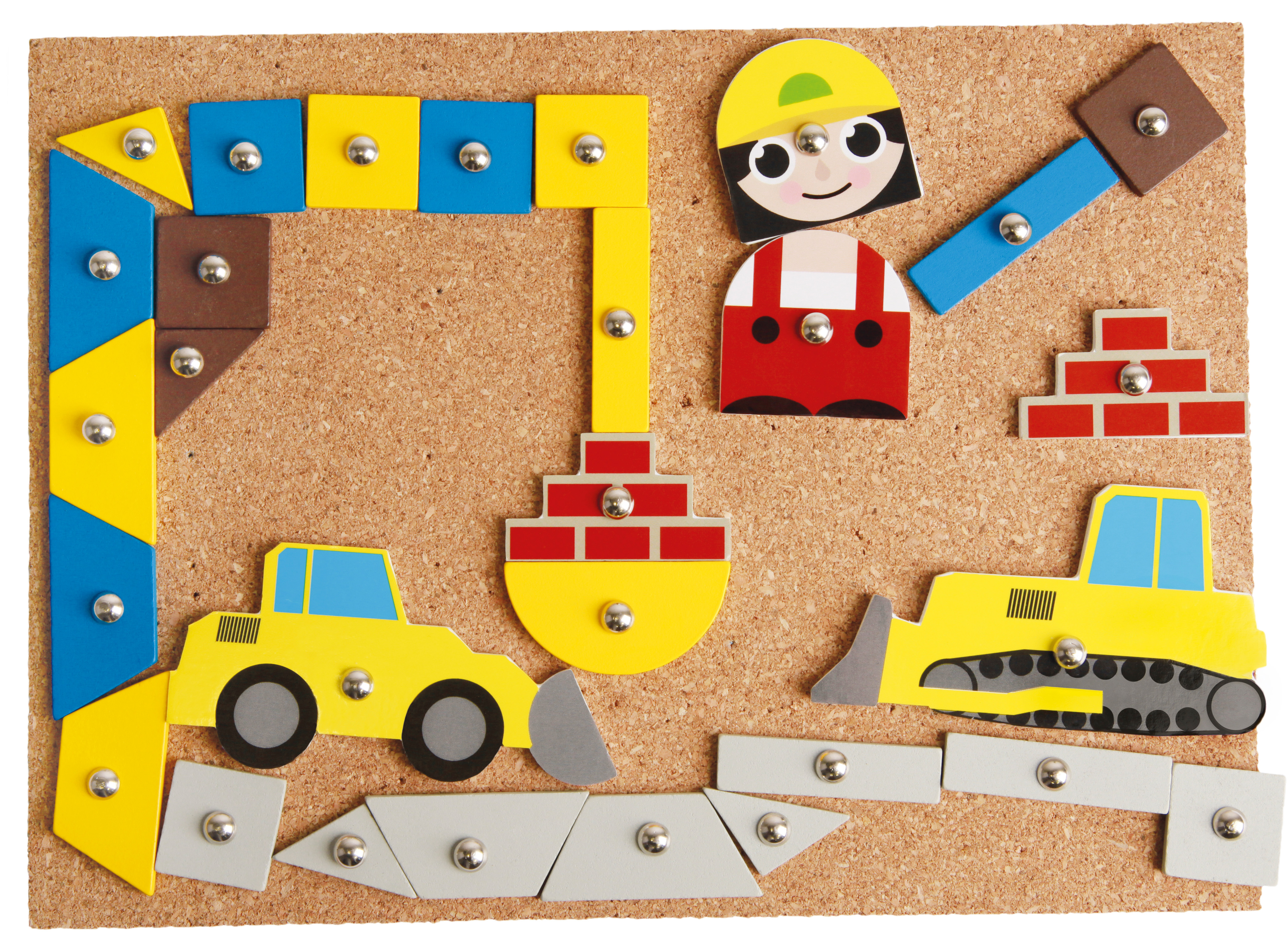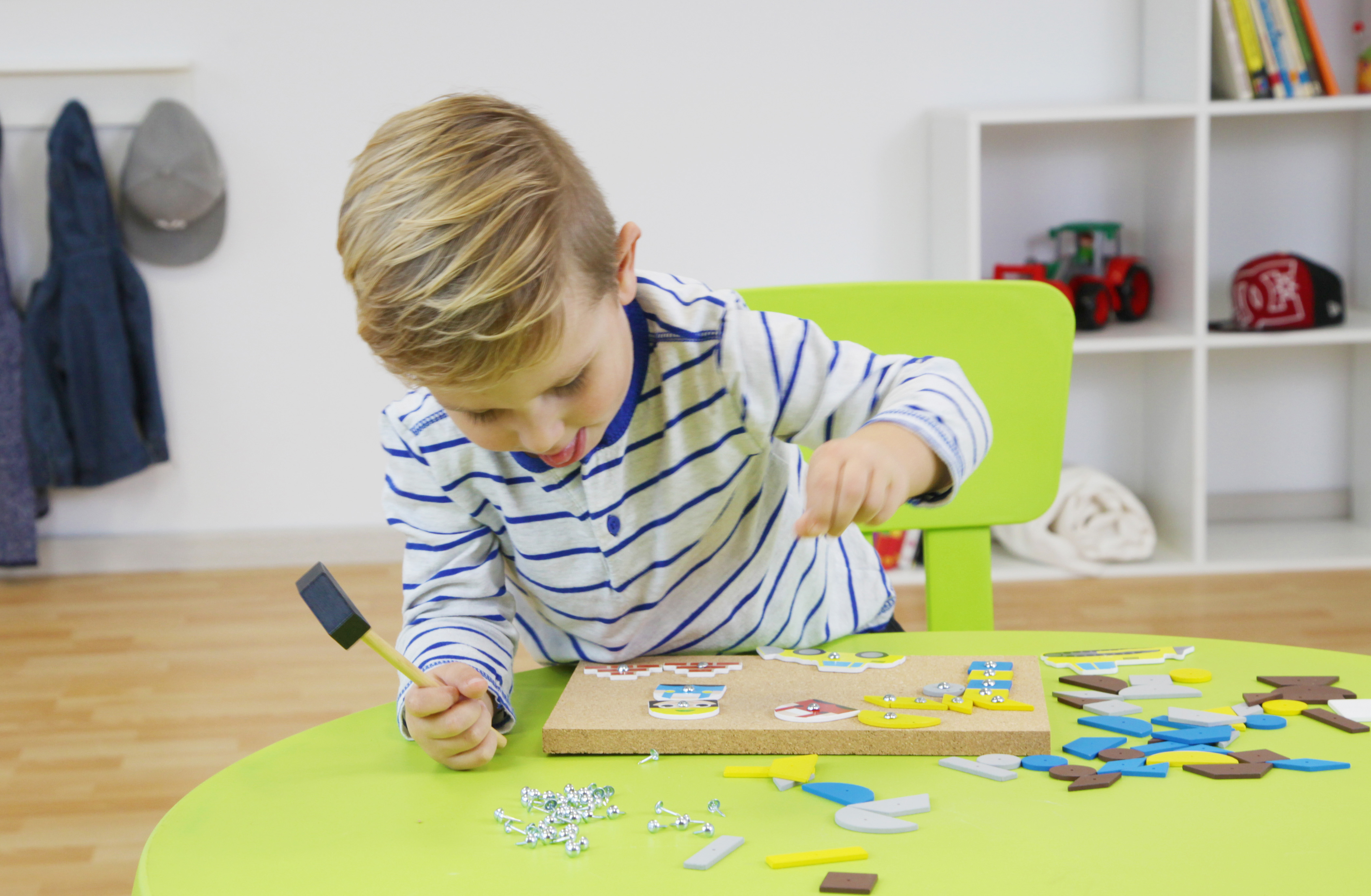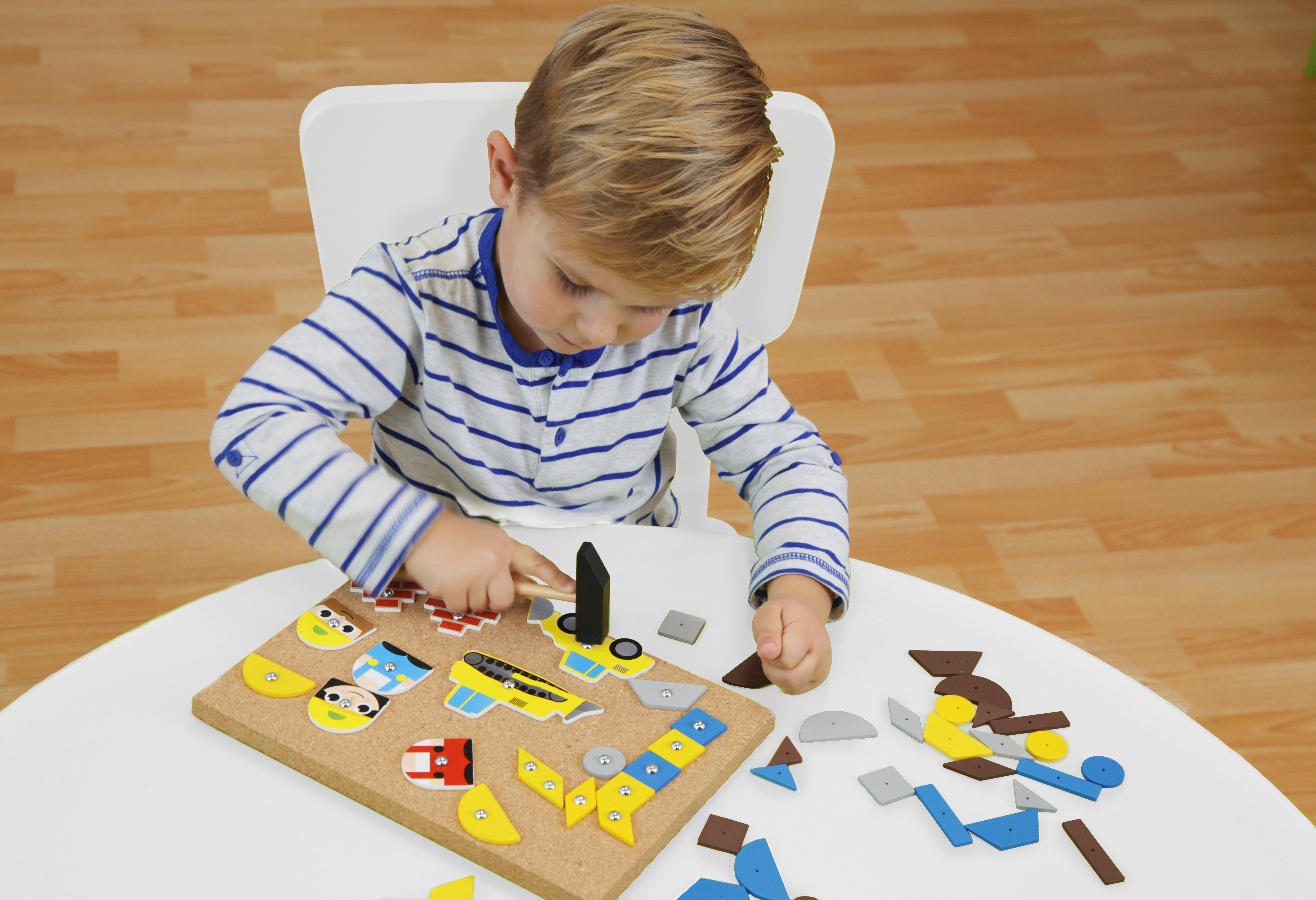 LENA® Hammerspiel Baustelle. Farbenfrohe Motive selbst gestalten. Inhalt: 56 bunte Plättchen, 8 bedruckte Sonderteile, Hammer und Nägel sowie Korkplatte: 27 x 20,5 cm. Fördert die Kreativität und Motorik. Geeignet für Kinder ab 3 Jahren. Verpackt in Faltschachtel mit Produktinformationen.
