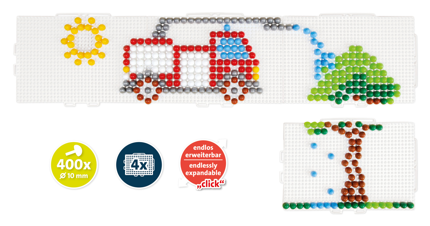 LENA® Mosaik Set Panoramabild XL color 400, 10 mm. 4 zusammensteckbare Mosaikplatten mit 400 bunten 10 mm Steckern inkl. Aufbewahrungsbeutel. Steckplatte: 38,5 x 25,5 cm. Geeignet für Kinder ab 3 Jahren. Verpackt in Faltschachtel mit Produktinformationen. MADE IN EUROPE. TÜV zertifiziert.
