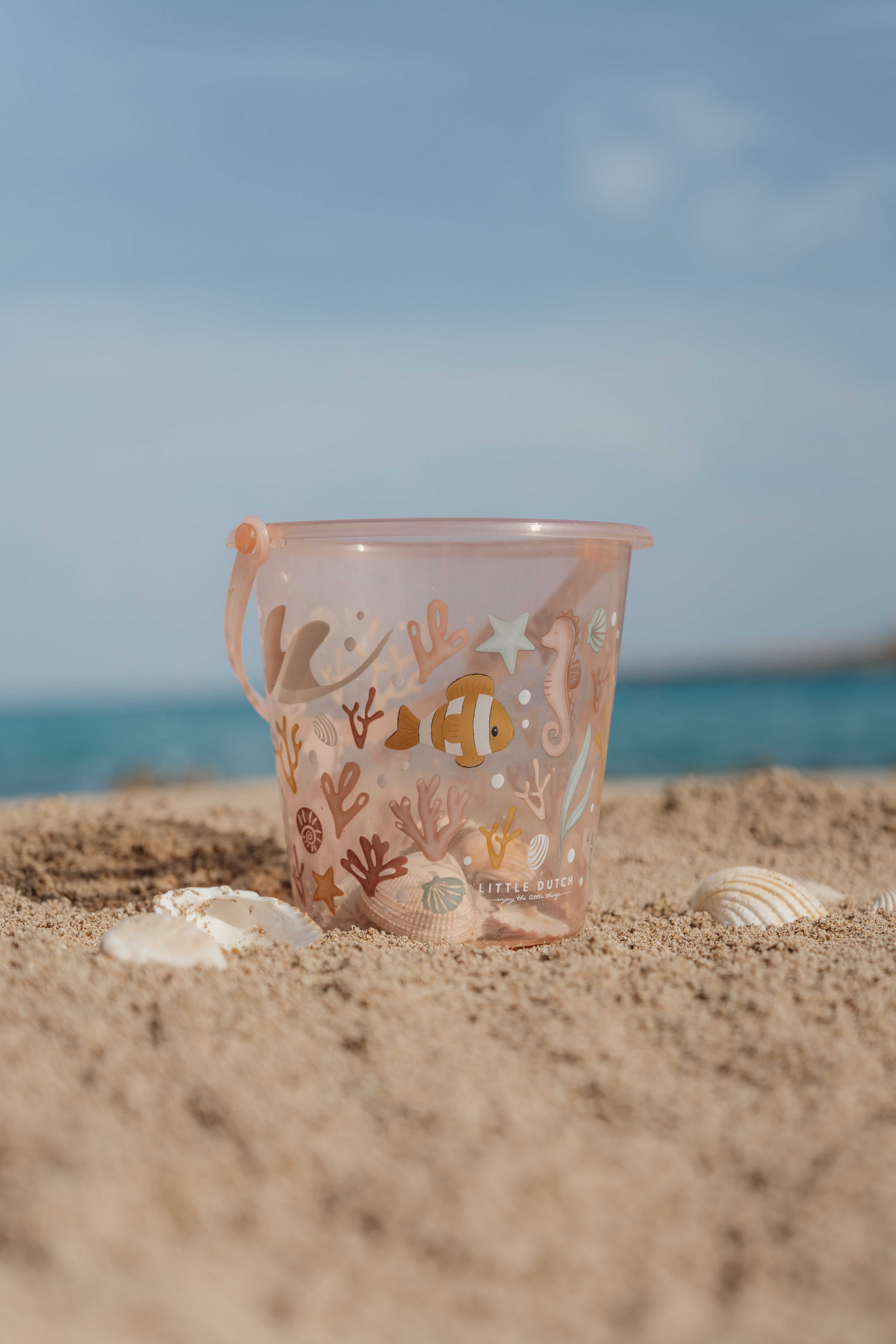 Bringt euren Strandeimer mit und baut damit die prächtigste Sandburg am gesamten Strand. Der Eimer verfügt über einen Griff, damit Kinder mühelos tragen können. Nicht nur Sand kann mit dem Eimer transportiert werden, sondern auch Muscheln oder kleine Steine finden darin Platz. Mit den süßen Motiven aus der Ocean Dreams Kollektion passt er perfekt zu der niedlichen Bademode von Little Dutch.