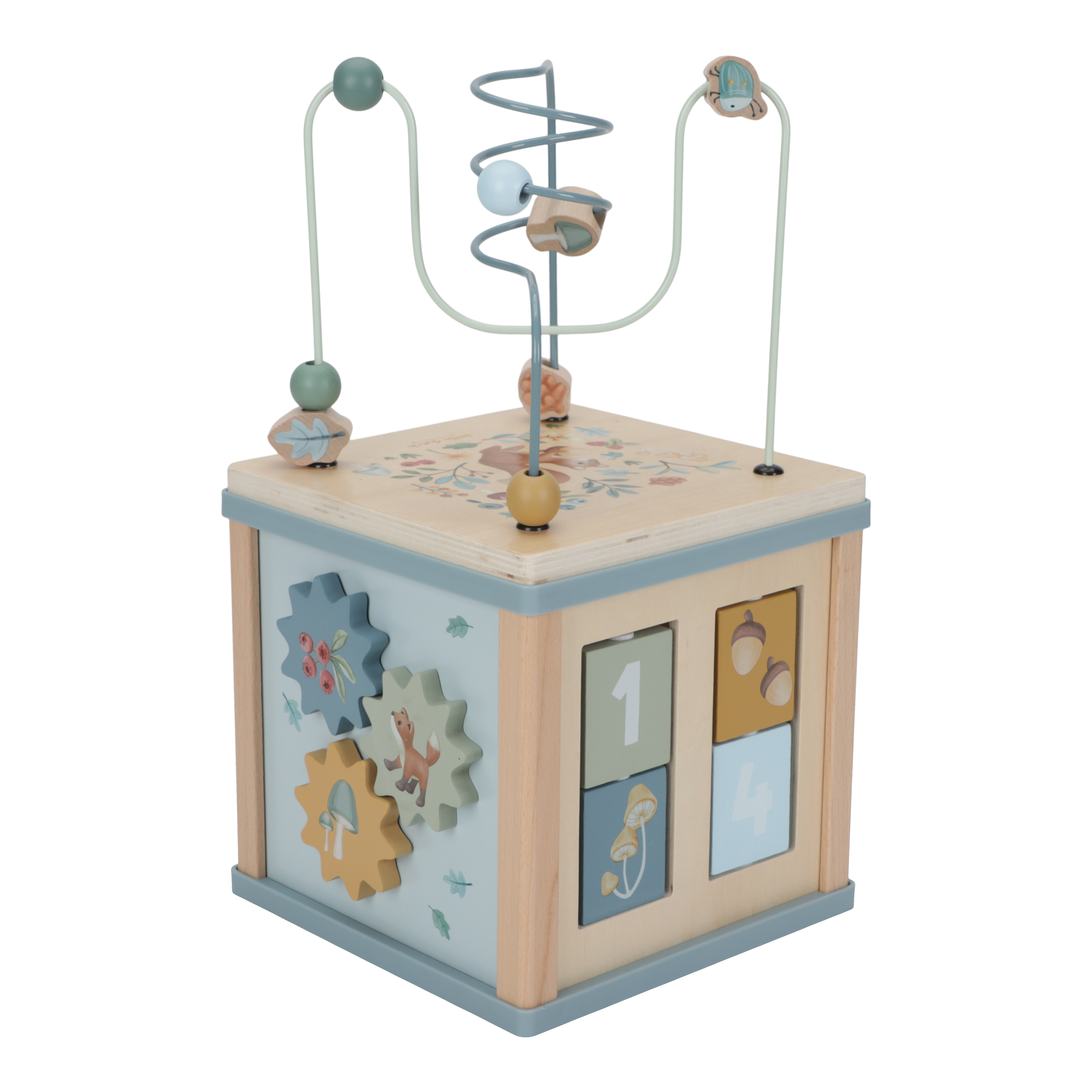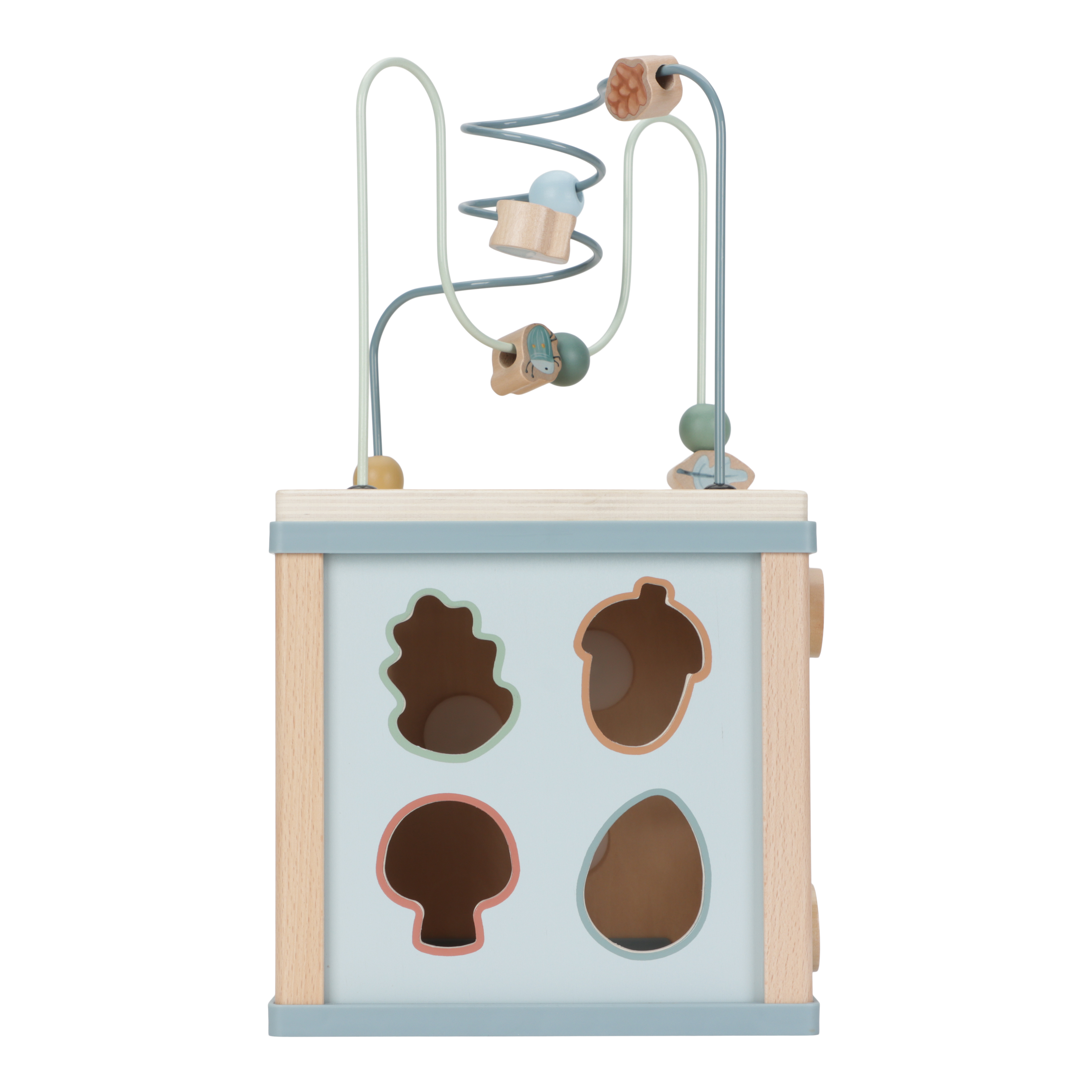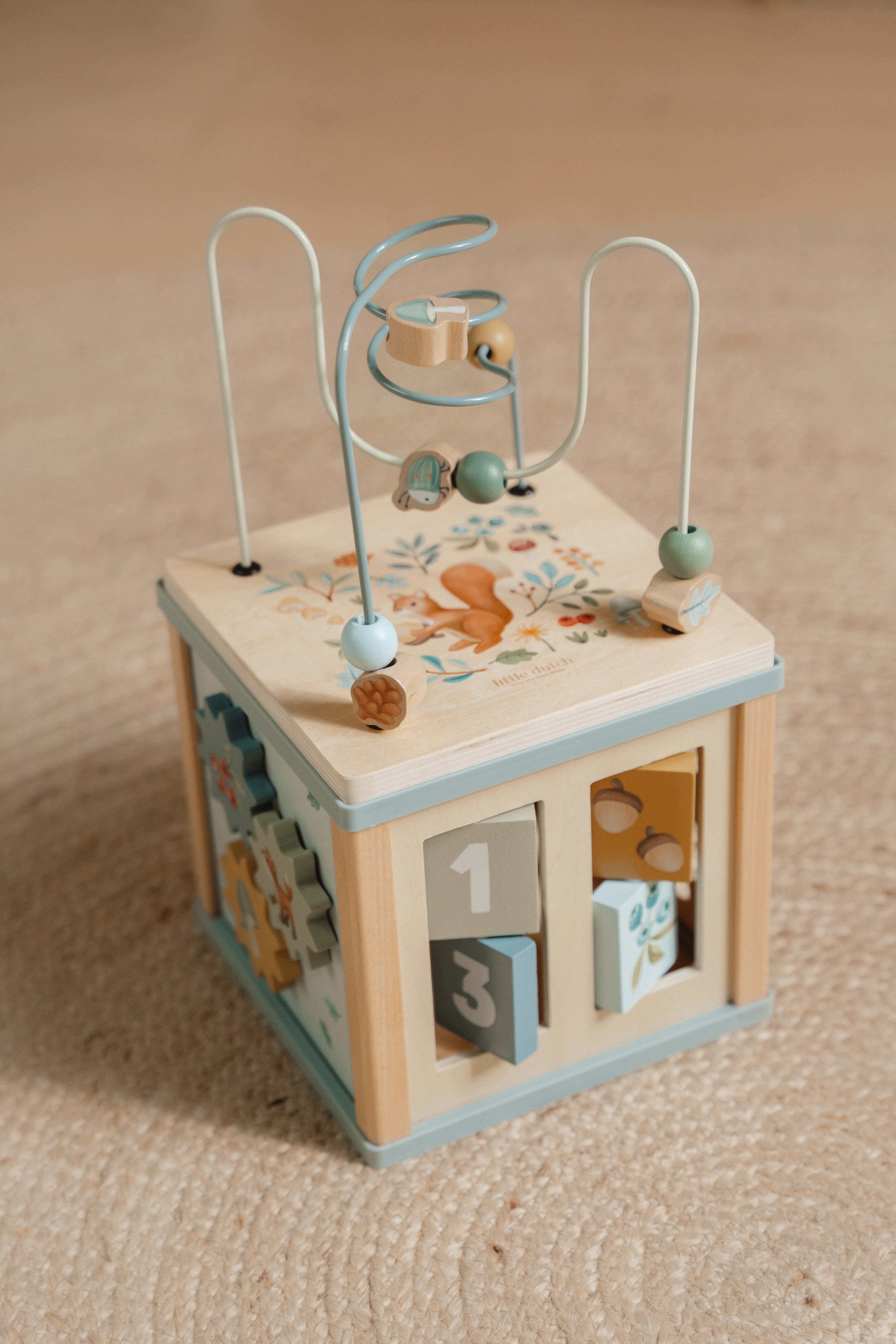 Begib dich auf ein Abenteuer und erkunde jede Seite dieses unterhaltsamen Würfels mit Aktivitäten. Auf jeder Seite befinden sich entzückende Forest Friends-Elemente und eine lustige Lernaktivität, darunter ein Formensortierer, sich drehende Zahnräder, Puzzles und ein herausforderndes Perlenlabyrinth auf der Oberseite. Mit jeder Aufgabe wird Ihr Kind seine Feinmotorik verbessern und seine Kreativität entfesseln können. Dieser Aktivitätswürfel regt nicht nur die Neugierde der Kinder an, sondern sorgt auch für stundenlanges spielerisches Entdecken.