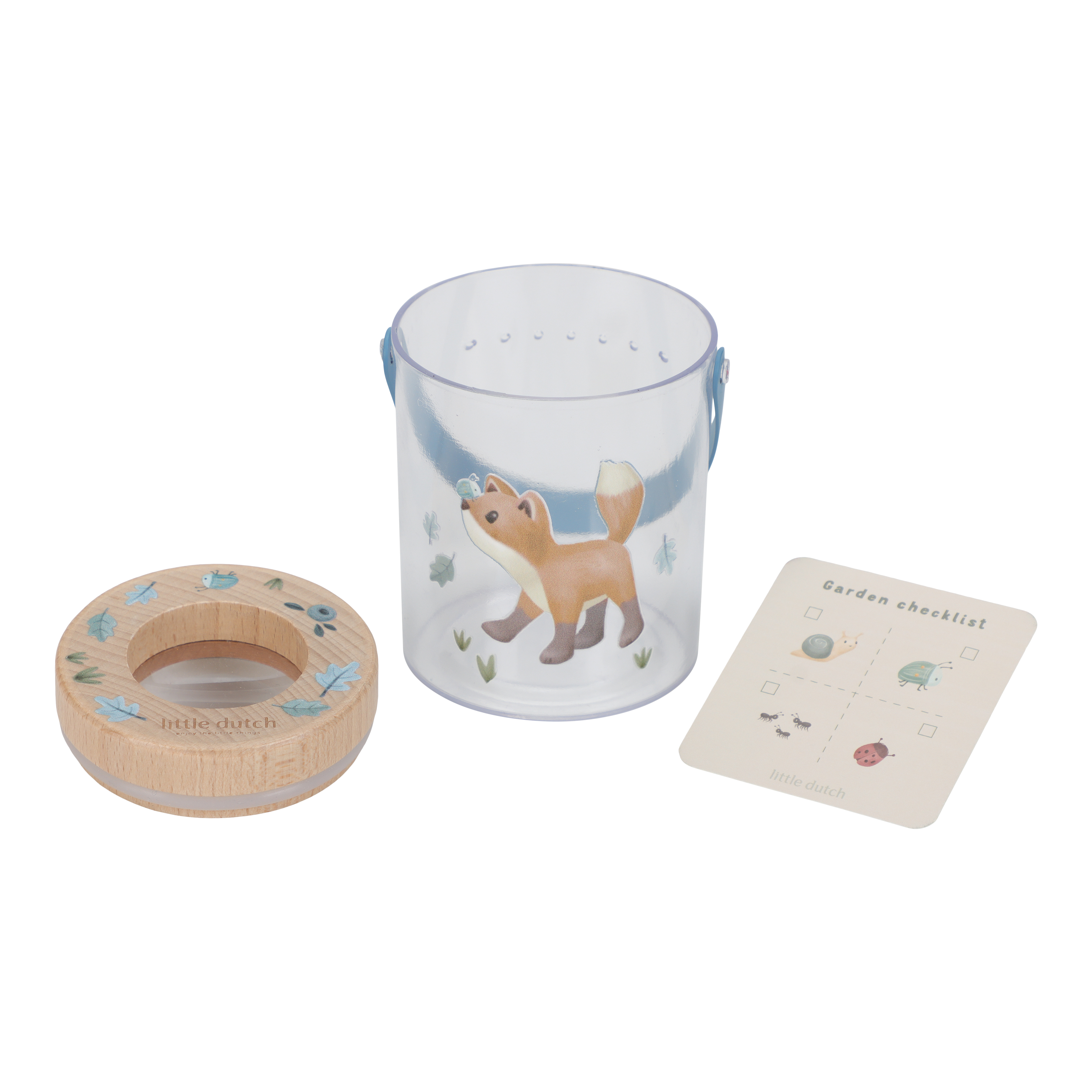 Entdecke die Welt der Insekten mit diesem praktischen Insektenglas! Der Holzdeckel, der mit einer Lupe ausgestattet ist, lässt dich die kleinsten Details klar erkennen. Der Deckel lässt sich leicht abnehmen und das Glas ist mit fröhlichen Forest Friends-Illustrationen verziert. Eine Insektenkarte zum Ankreuzen aller Insekten liegt bei. Durch den transparenten Kunststoff kann man die Insekten von allen Seiten betrachten und die Luftlöcher sorgen für eine gute Belüftung. Perfekt für neugierige Kinder, die die Natur erforschen wollen!