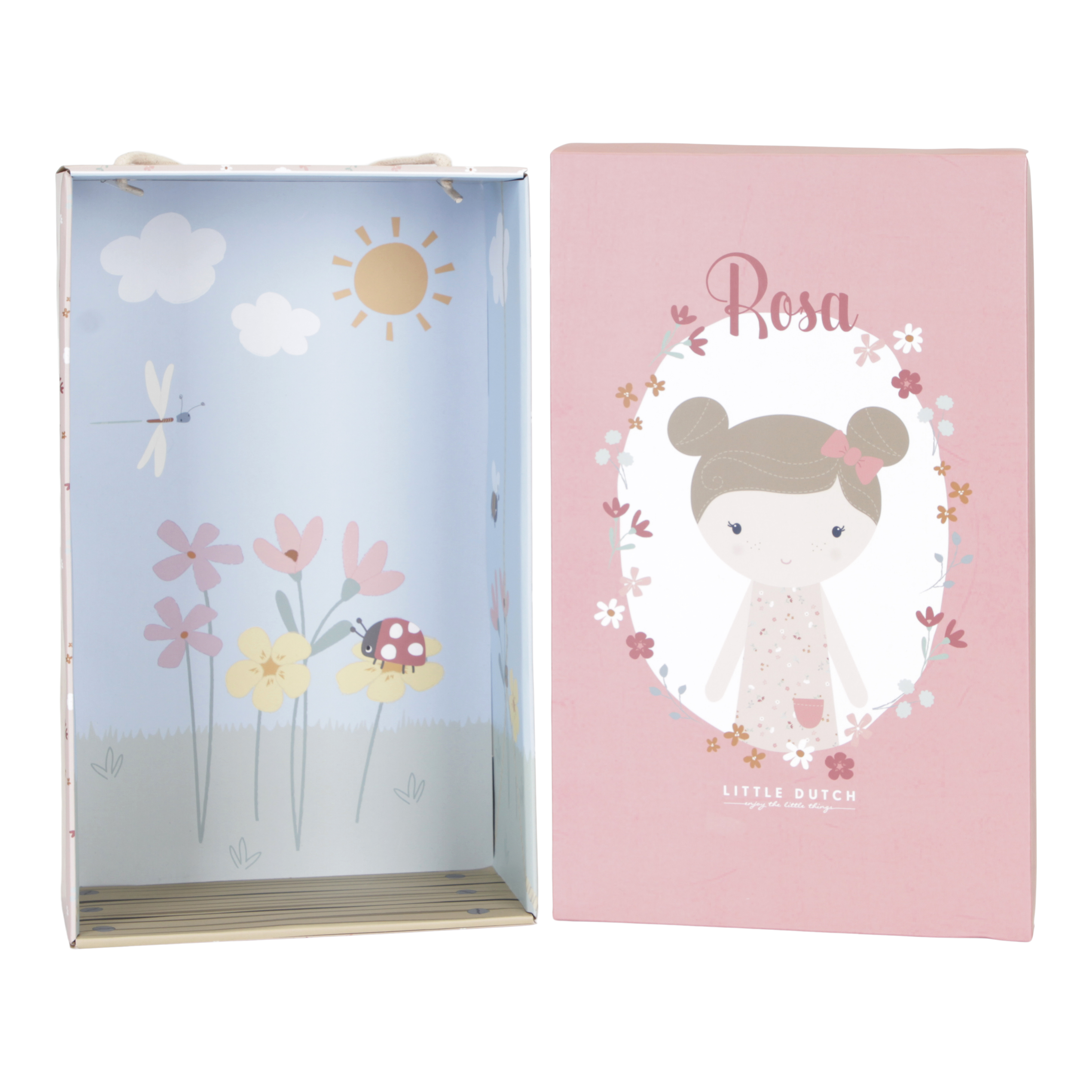 Das ist die süße kleine Rosa. Diese Plüschpuppe von Little Dutch in einem süßen Kleidchen will geknuddelt werden. Rosa ist 50 cm. groß und wird in einer hübschen Schachtel geliefert.