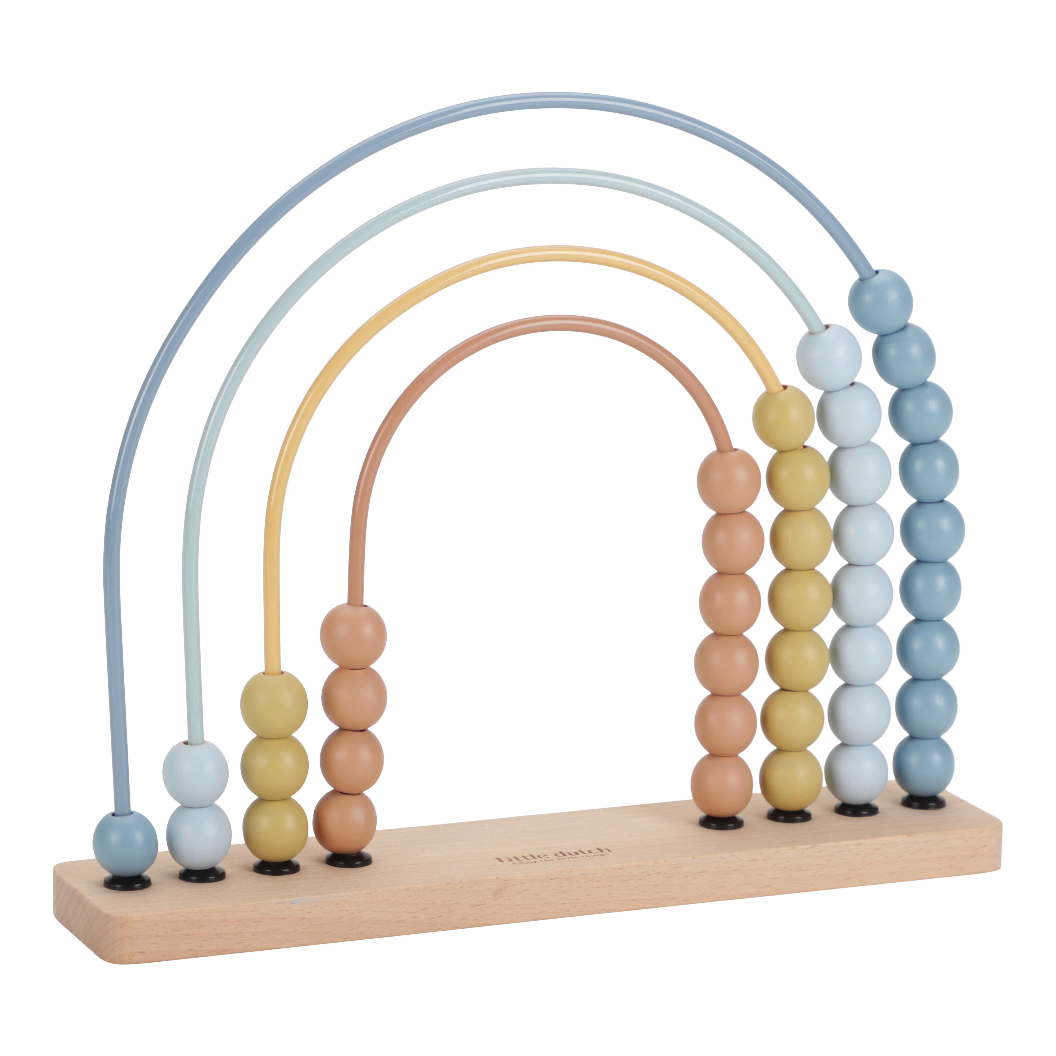 Zähle von 1 bis 10, in allen Farben des Regenbogens! Mit diesem niedlichen Abakus in Regenbogenform macht das Zählen richtig Spaß. Schieben Sie die bunten Perlen von einer Seite zur anderen und entdecken Sie die verschiedenen Blau-, Gelb- und Brauntöne. Während Ihr Kind spielt und ein Grundverständnis für das Zählen entwickelt, werden auch die feinmotorischen Fähigkeiten geschult. Ältere Kinder können mit Zählübungen auf dem Abakus ihre mathematischen Fähigkeiten trainieren. Eine tolle Möglichkeit, gleichzeitig zu spielen und zu lernen!