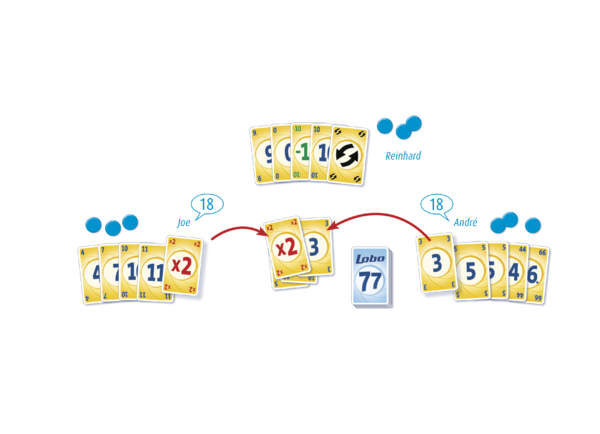 Spiel eine Karte und zähle ihren Wert zu dem Wert der schon ausgespielten Karten hinzu. Setze Sonderkarten geschickt ein und vermeide Schnapszahlen genauso wie einen Wert von mehr als 77, denn das kostet dich einen Chip. Kannst du keinen Chip mehr abgeben, scheidest du aus. Bist du als Letzter noch im Spiel, gewinnst du.