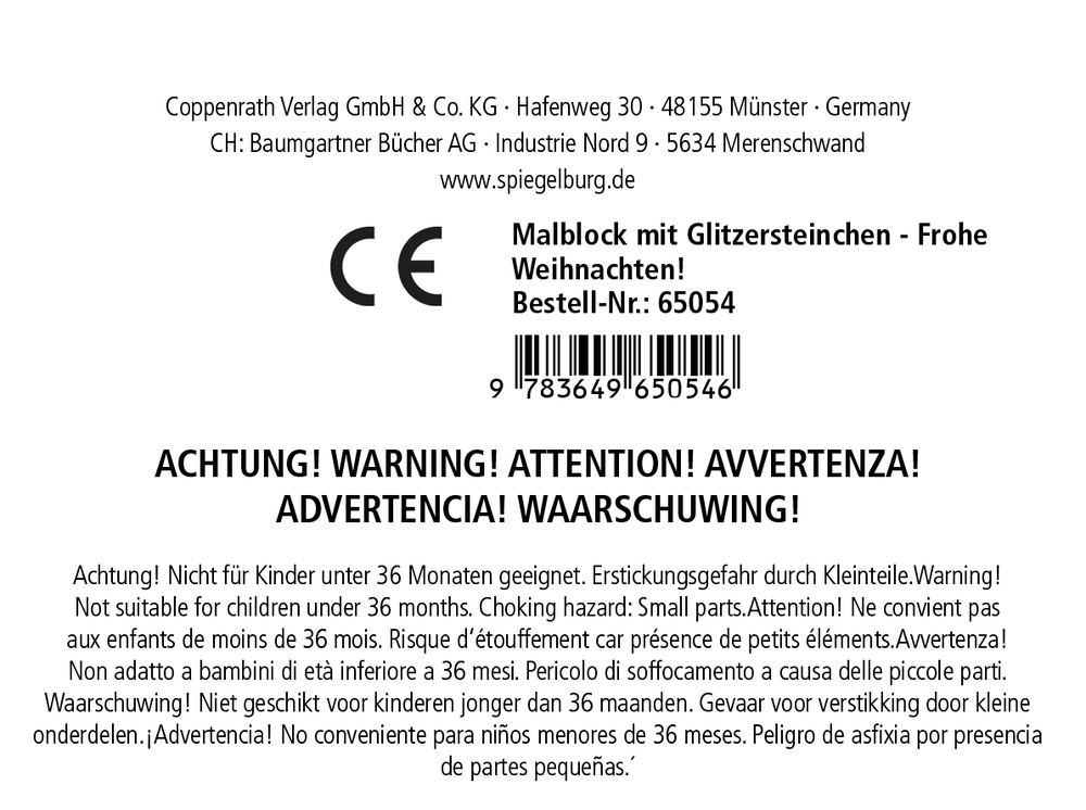 Dieser zauberhafte Malblock enthält 24 weihnachtliche Motive, die darauf warten, von kleinen Künstlerinnen und Künstlern ausgemalt und mit Glitzersteinchen verziert zu werden.