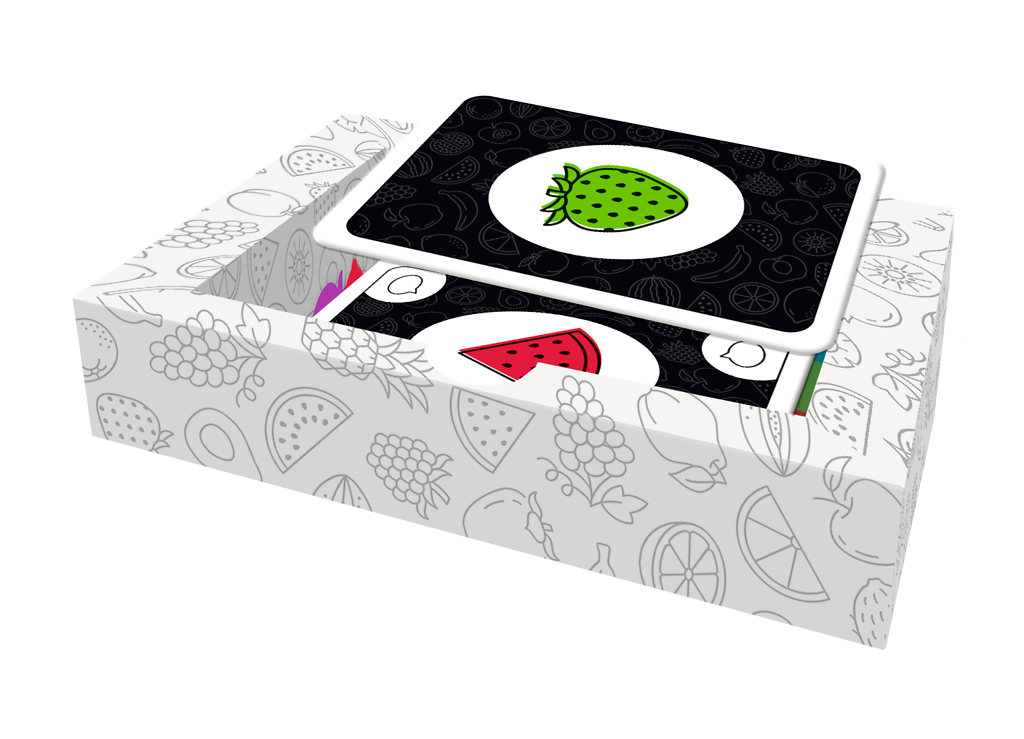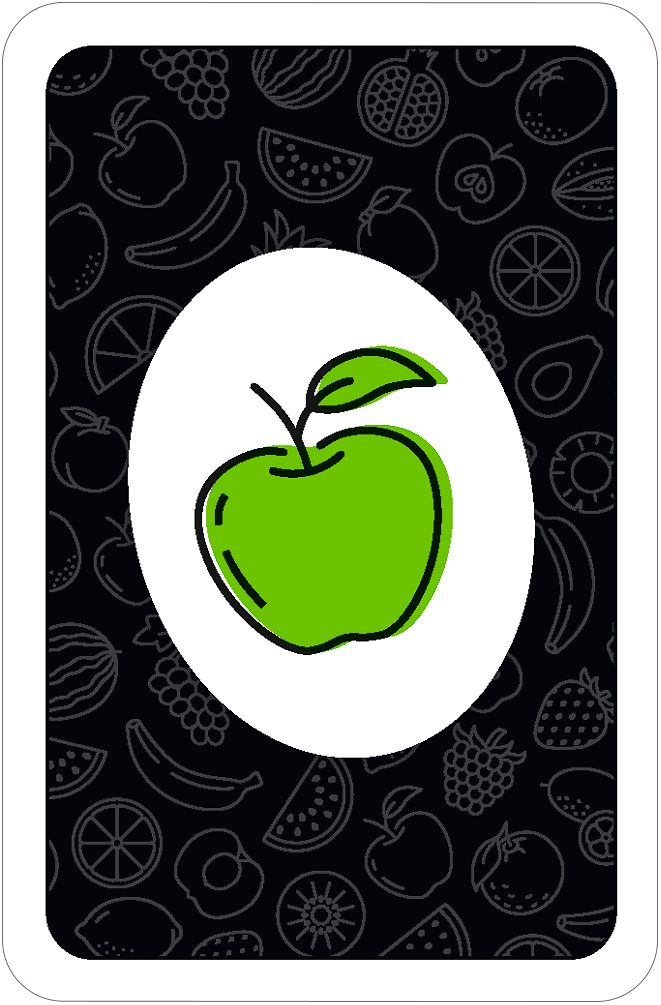 + Reihum werden die Karten gemäß den bekannten Mau-Mau-Regeln gespielt (Farbe oder Obstsorte passend spielen).