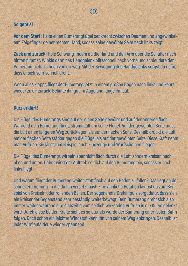 + inklusive spannender Informationen zu den physikalischen Prinzipien eines Bumerangs im Inneren der Verpackung