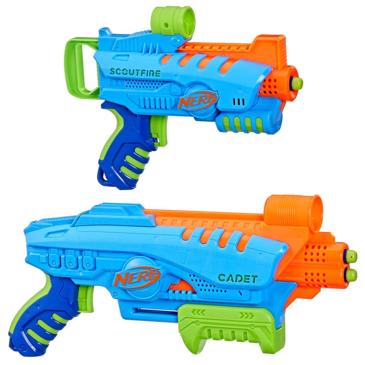 - EASY-PLAY BLASTER: Die 2 Spielzeug-Blaster in diesem Nerf Elite Junior Starter-Set verfügen über ein unkompliziertes Design, sodass Kinder ganz alleine drinnen und draußen den Nerf Spaß genießen können