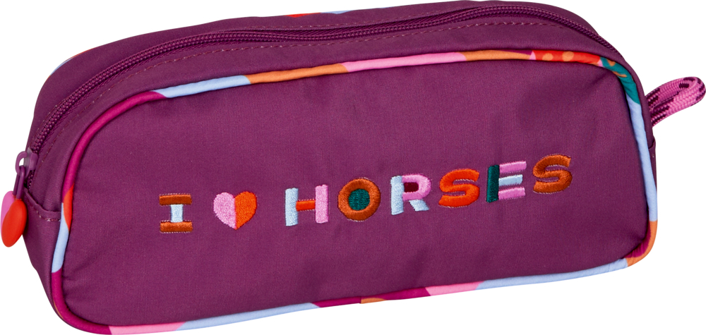 Praktisches Stifte-Etui aus recyceltem Poyester mit zauberhafter mit Stickerei. In dem Etui ist viel Platz für Stifte, Schreibutensilien und andere Accessoires. Für echte Pferdefreunde!