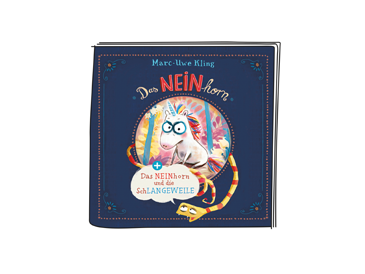 Das NEINhorn und die KönigsDOCHter, die hatten einen Streit ... aber beid e wissen nicht mehr, worum es ghet. Als sich der NAhUND zum Erzieher aufspielt, wird es dem NEINhorn zu blöd und es zischt ab. Nach eienr langen Wanderung landet es im dichten, dunklen Dschungel, wo die SchLANGEWEILE von einem Assst runterhängt und allessss ssuper schlangweilig findet. Egal, was das NEINhorn vorschlägt, sie hat keine Schlussst darauf. Ob sich das NEINHorn wohl von der SchLANGEWEILE einwickeln lässt.