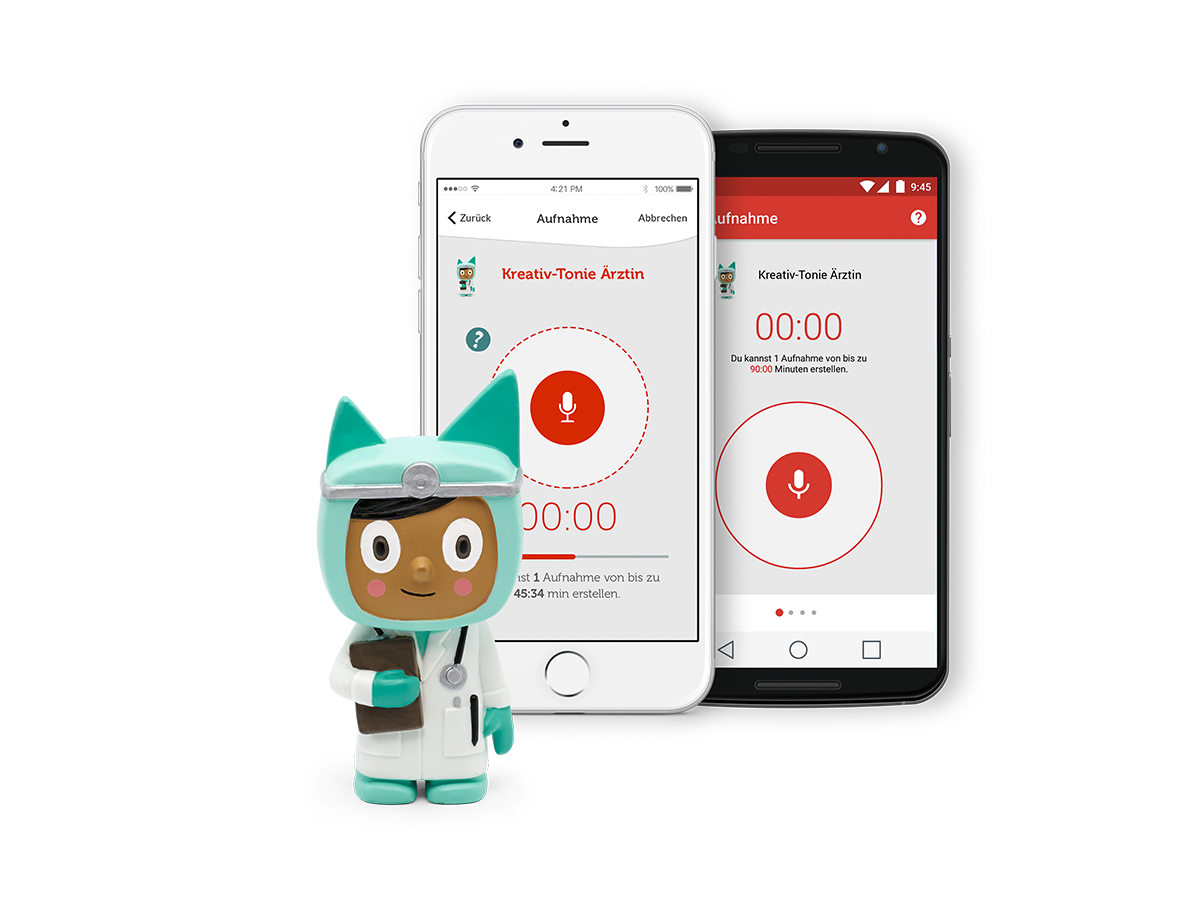 Mit der dazugehörigen, kostenlosen Smartphone-App können eigene Sprachaufnahmen aufgezeichnet und dem Kreativ-Tonie zugewiesen werden
