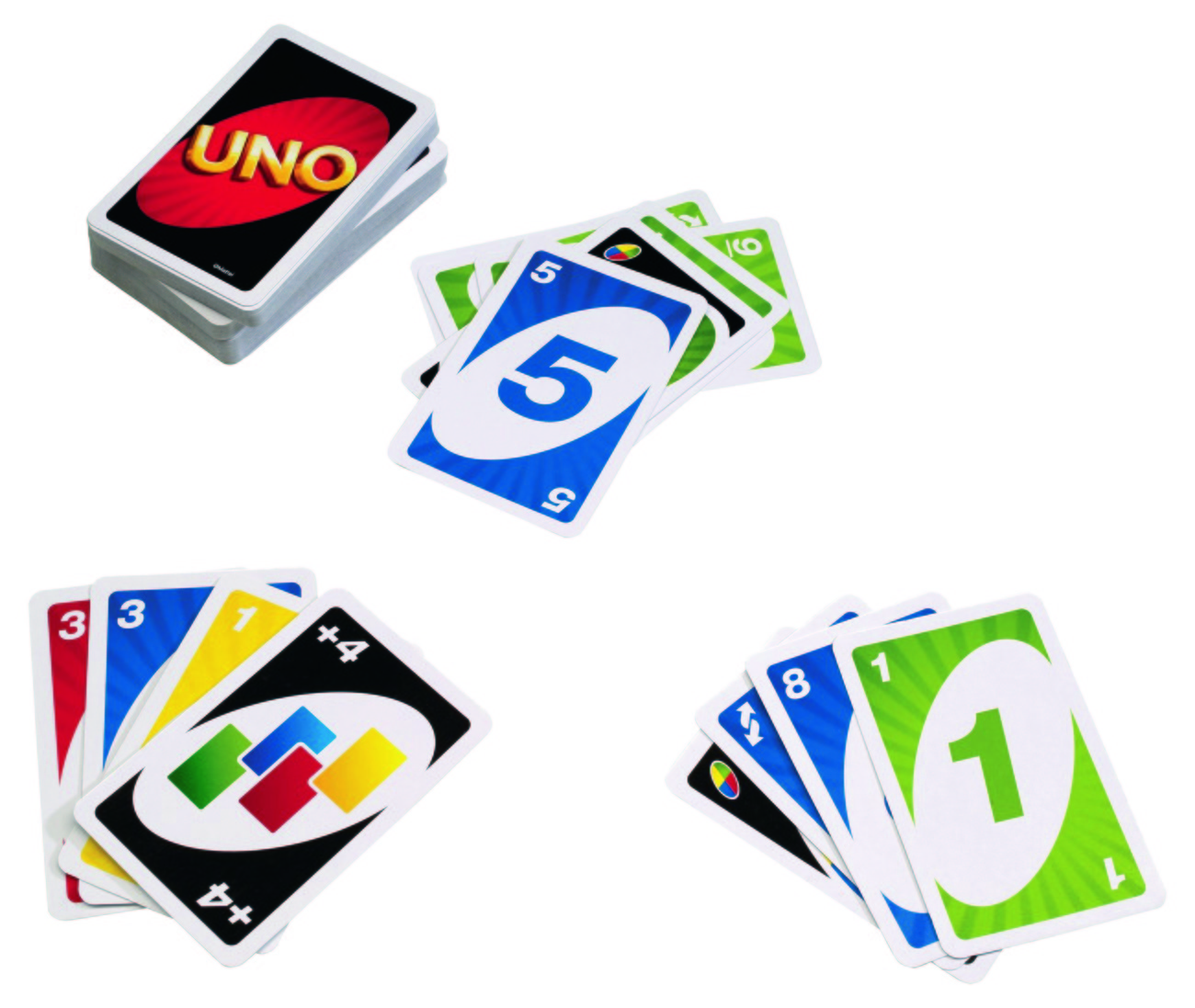 UNO – der Klassiker unter den Spielen. Das weltweit beliebteste Familienkartenspiel. Ziel des Spiels ist es, als Erster alle eigenen Karten nach Zahl und Farbe abzulegen. Vier verschiedene Aktionskarten: „Zieh 2“, „Zieh 4“, „Aussetzen“ und „Retour“ sorgen im Spielverlauf für überraschende Wendungen.