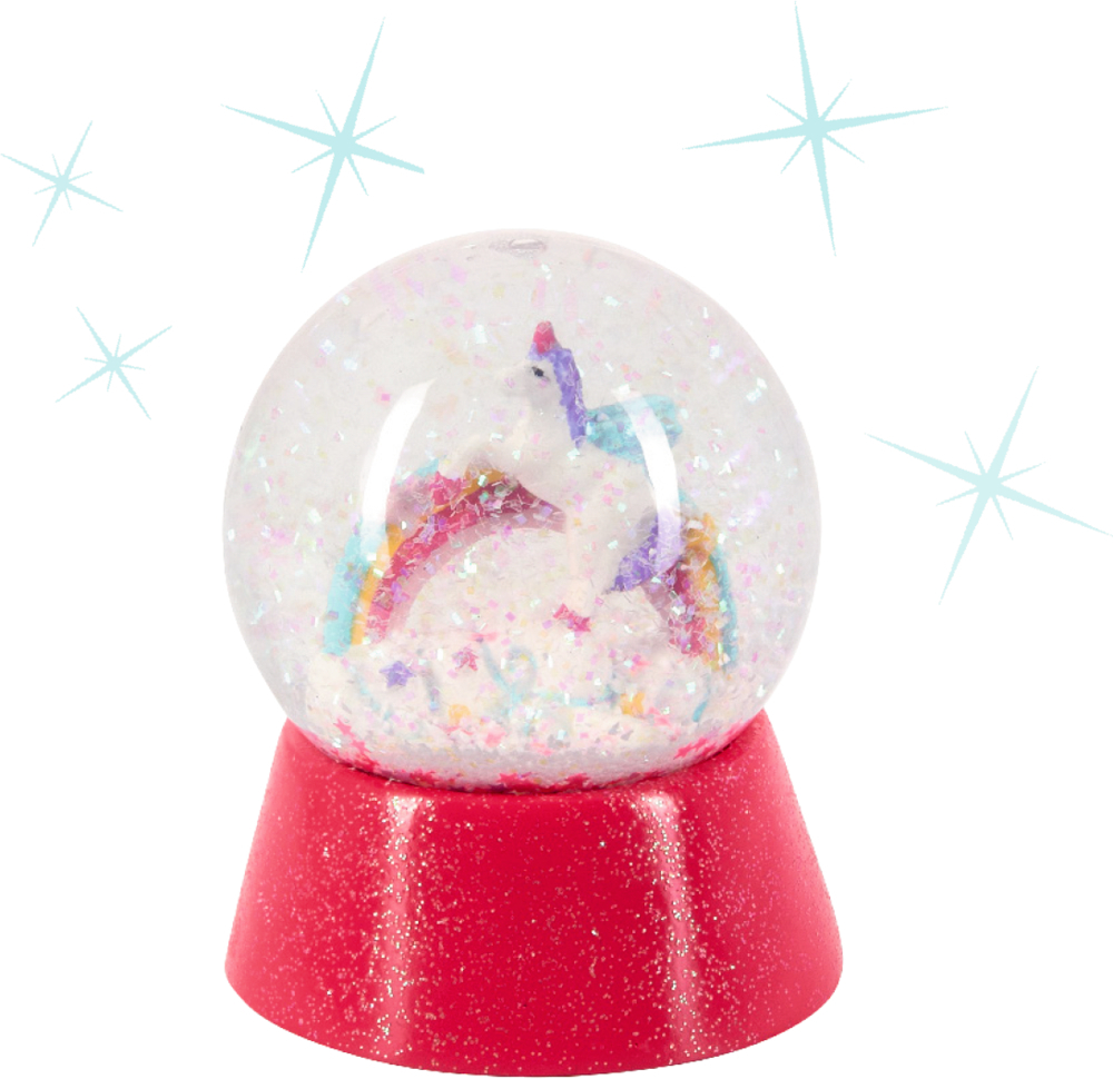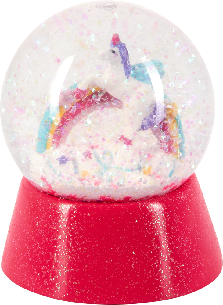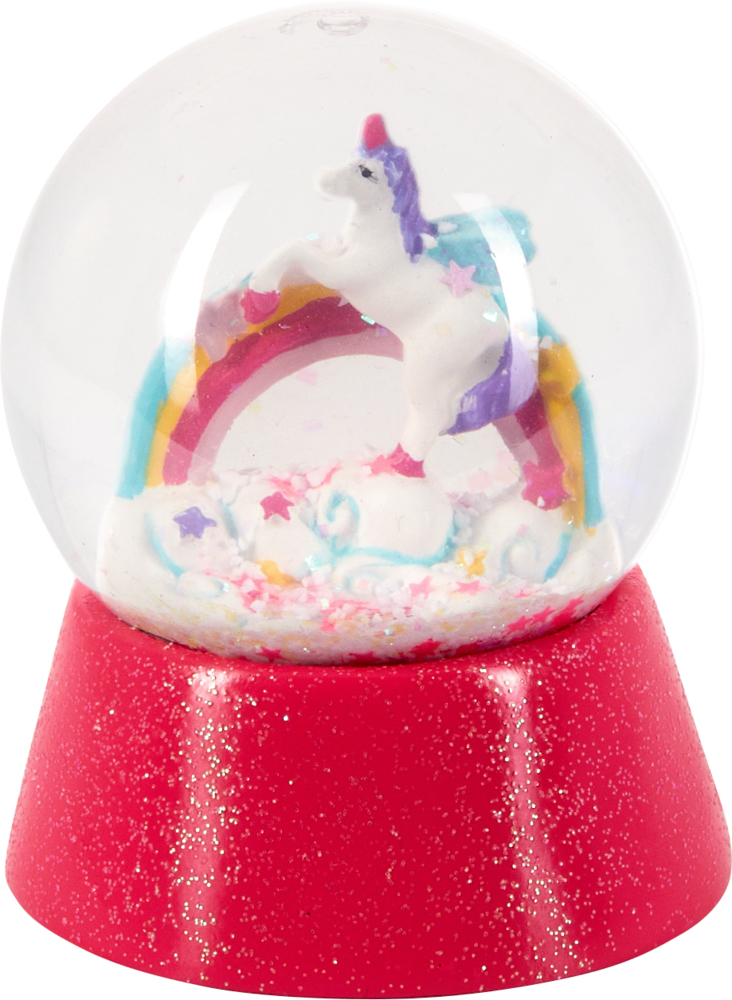 Willkommen im Einhorn-Paradies: Mit dieser zauberhaften Schneekugel werden Einhorn-Träume wahr! In einer magischen Welt voller Glitzer, feinem Schnee und sternförmigen Pailletten entdecken Kinderaugen ein kleines Einhorn und einen bunten Regenbogen. Diese glitzernde Zauberkugel ist das perfekte Geschenk für kleine Einhorn-Fans und eignet sich ideal als Dekoration für das Kinderzimmer. Einfach schütteln und staunen!